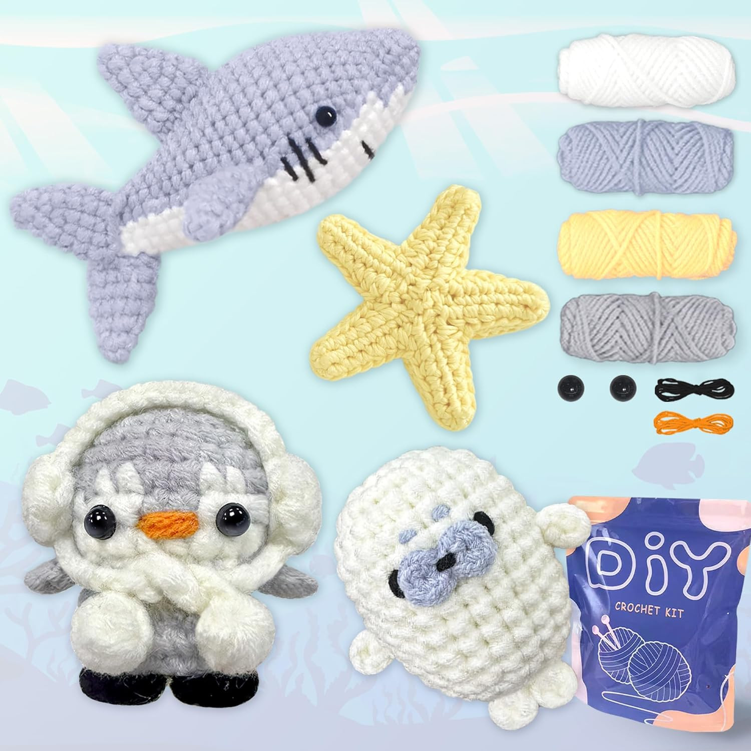 Crochet Kit for Beginners Ocean Animal Amigurumi DIY Yarn Kit with Step-by-Ste