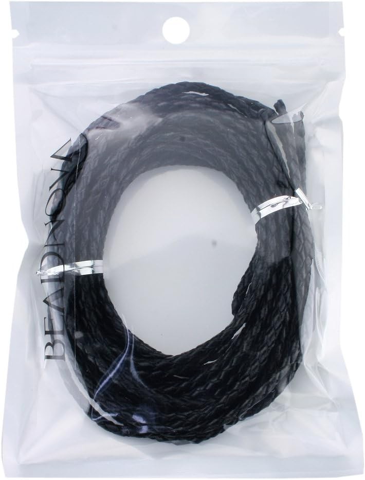 BEADNOVA 3.0mm Round Folded Bolo Genuine Braided Leather Cords for Bracelet Neck
