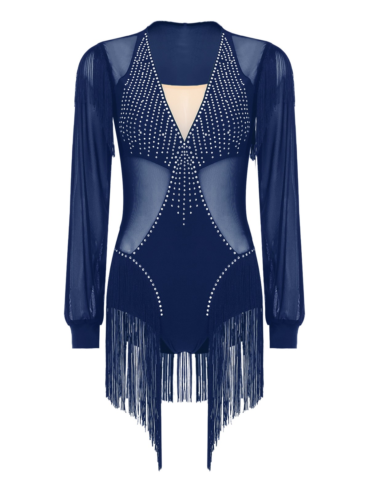 Women's Latin Ballet Leotard Fringe Bodysuit Figure Skating Costume Unitards