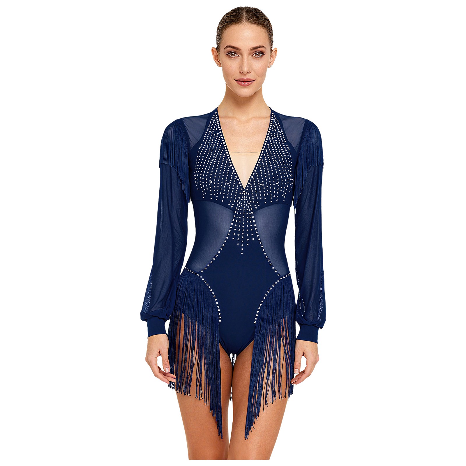 как выглядит Womens Latin Ballet Leotard Fringe Bodysuit Figure Skating Costume Unitards фото