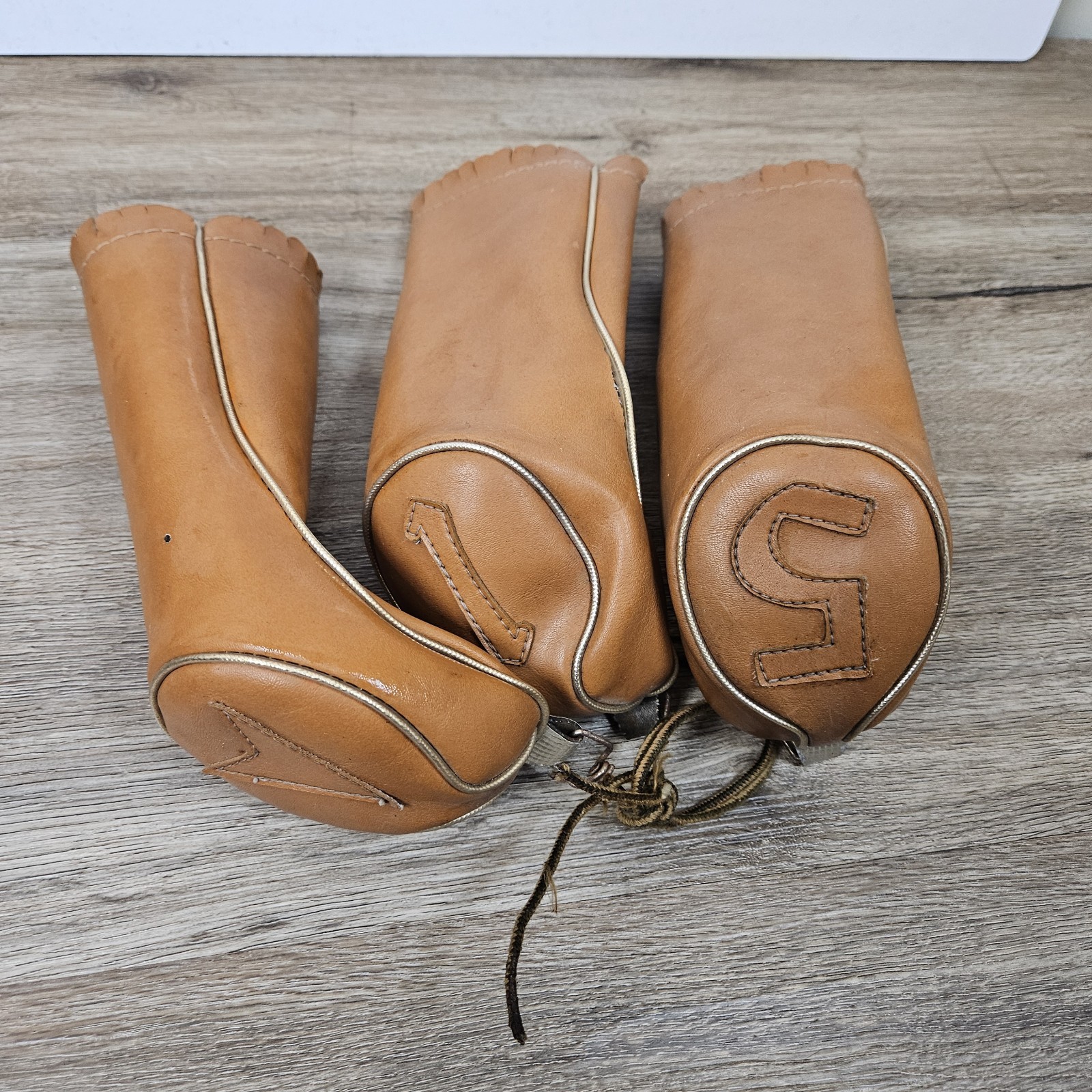 Vtg Golf Club Fairway Wood Head Cover Driver Brown Leather Headcover LOT OF 3