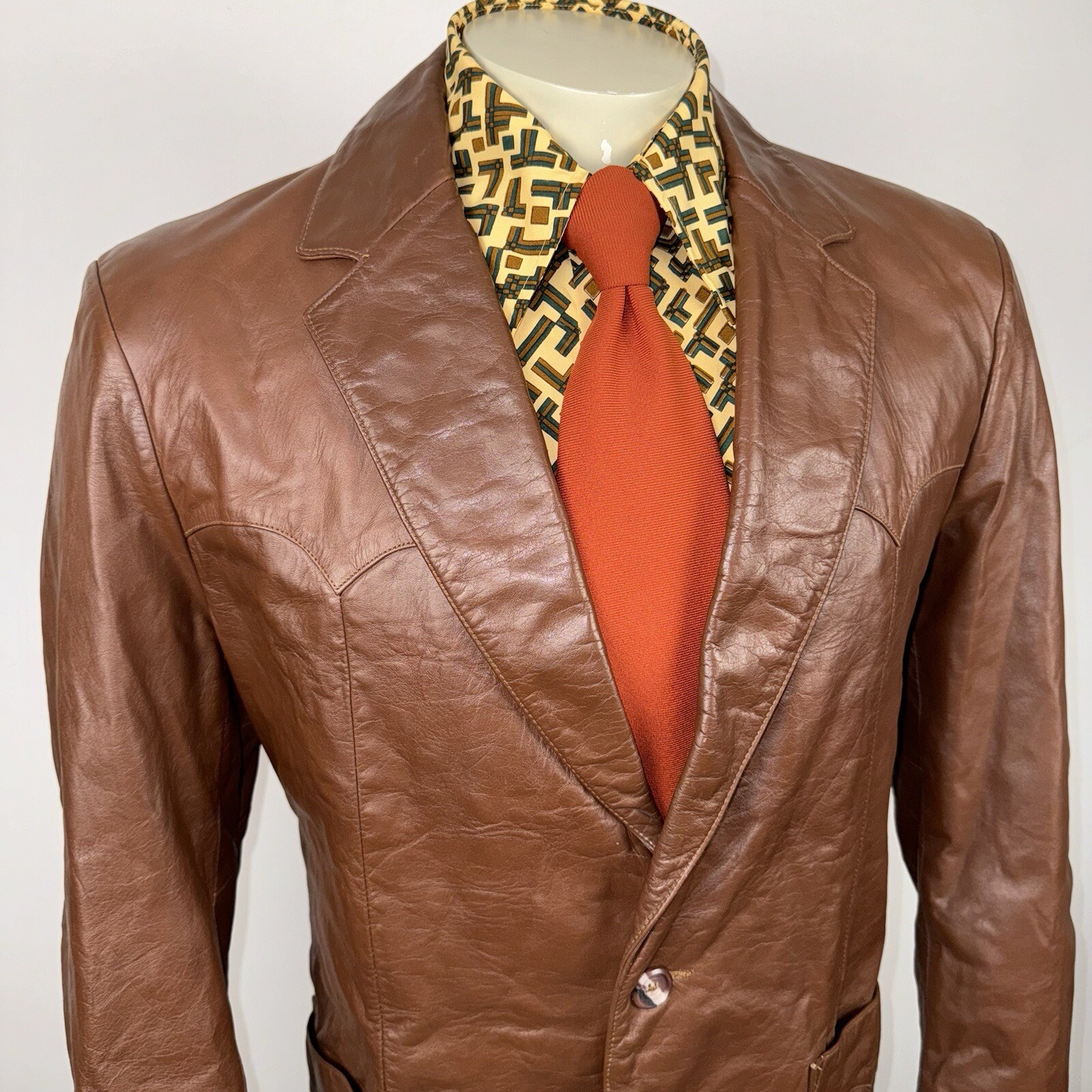 как выглядит Vtg 70s Jacket Leather Blazer Coat Oakridge Western Disco Rockabilly Mod Mens 44 фото
