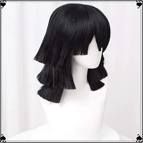 Obanai Cosplay Wig for DS Costume Short Black Anime Wigs for Adults with Cap ...