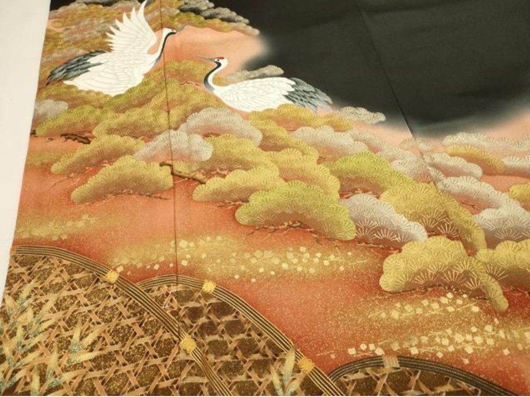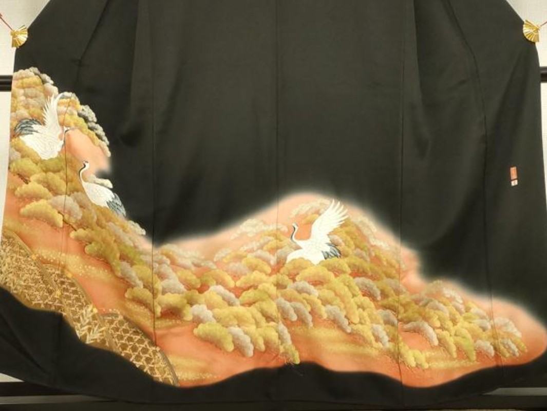 Japanese Black Tomesode Kimono Silk Traditional Gold Detail Vintage Japan