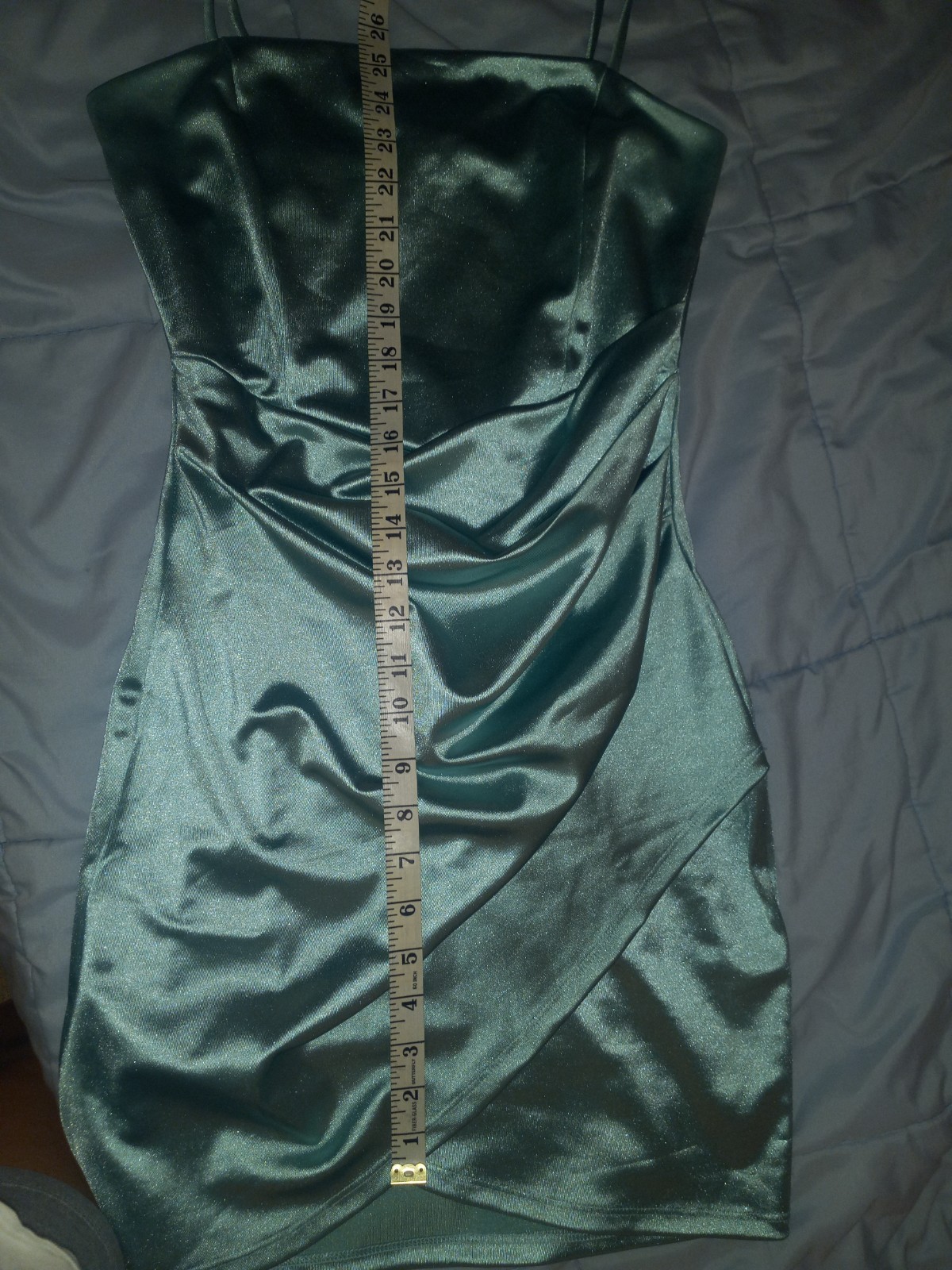 как выглядит Windsor Satin Bodycon Mini Dress - Teal Blue - Sz Small - Homecoming фото