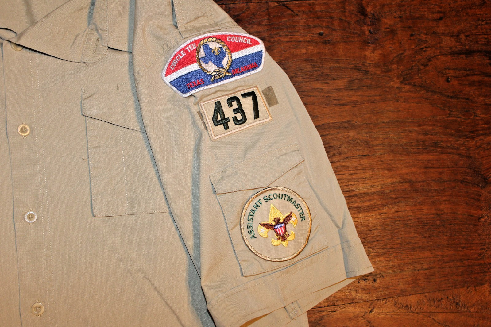 Boy Scouts of America BSA Men's Shirt Tan X-Large XL Glued Patches Short Sleeve