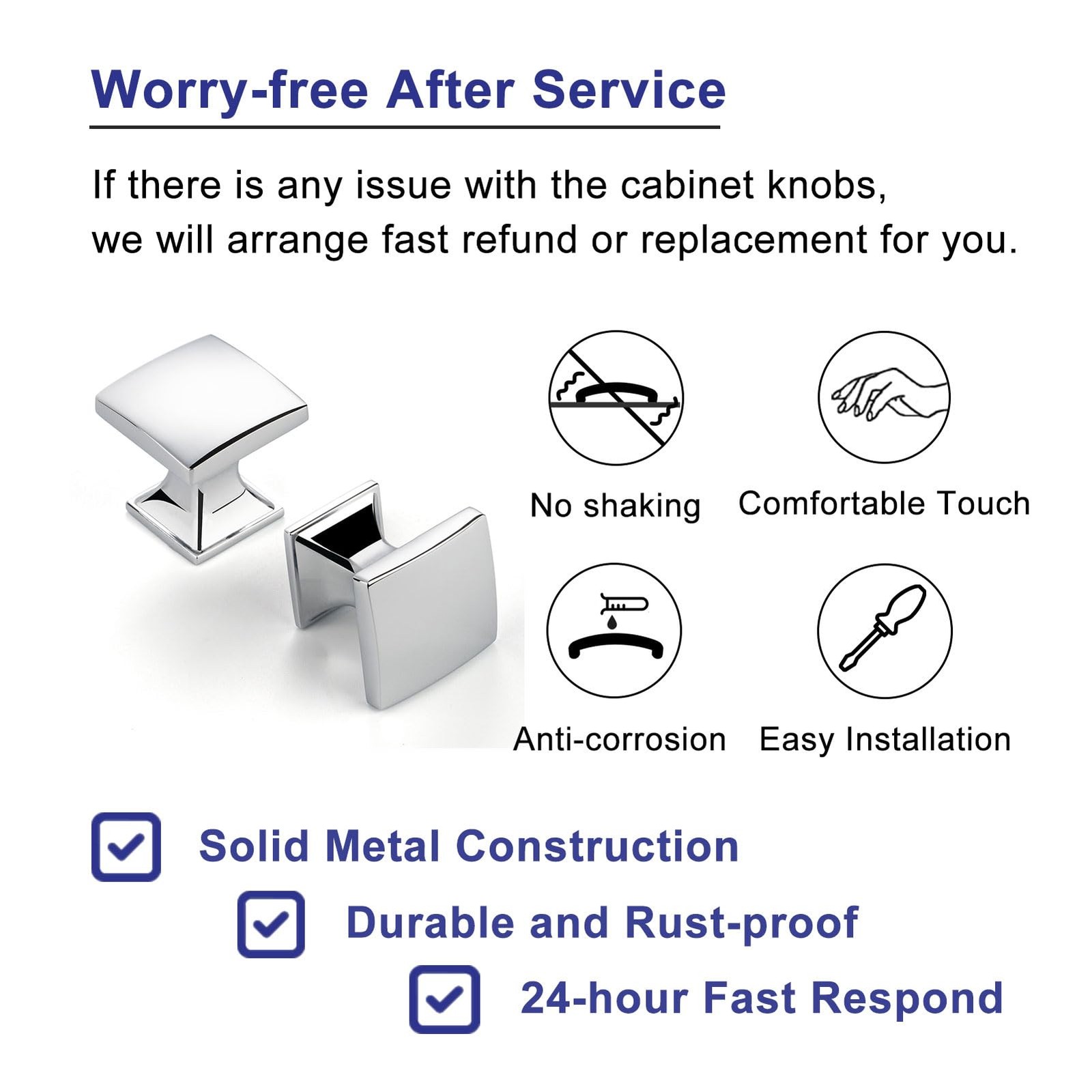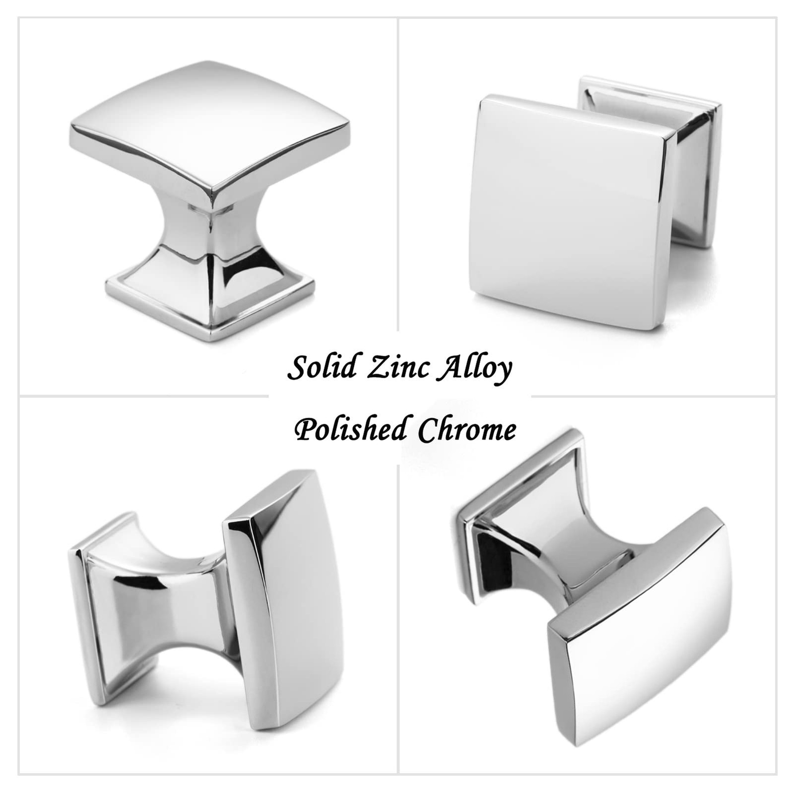10 Pack 1 Inch, Square Polished Chrome Cabinet Knobs Chrome Drawer Knobs Chro...