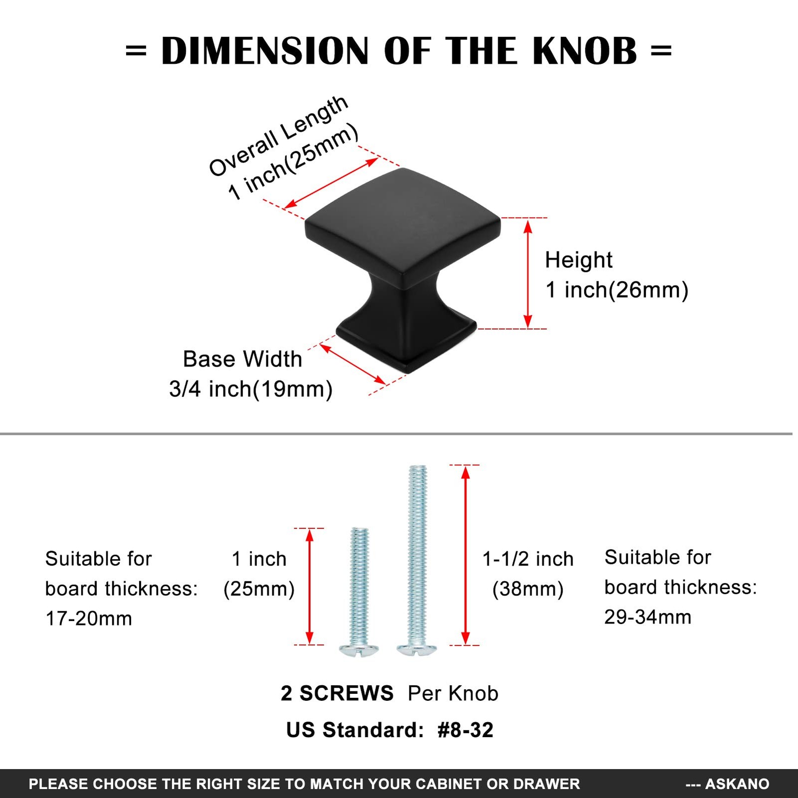 Included Components: Knob, Screw