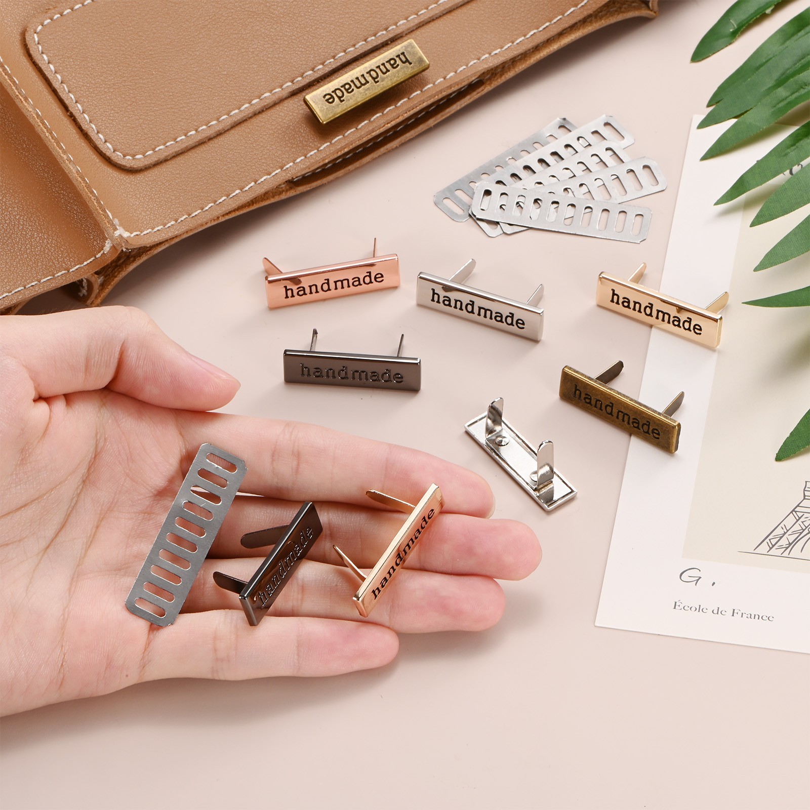 как выглядит Handmade Metal Rectangle Tags Label 8PCS Use for DIY Craft Light Gold фото