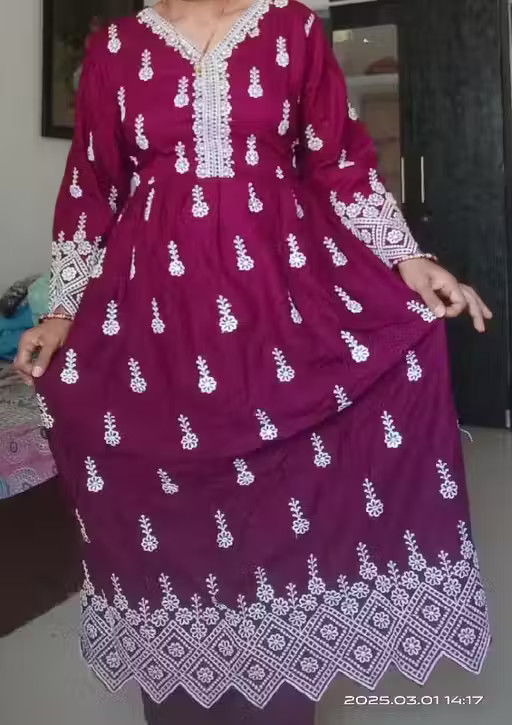 как выглядит Womens Rayon Embroidery Straight Kurta set Embroidered Kurta set for Womens фото