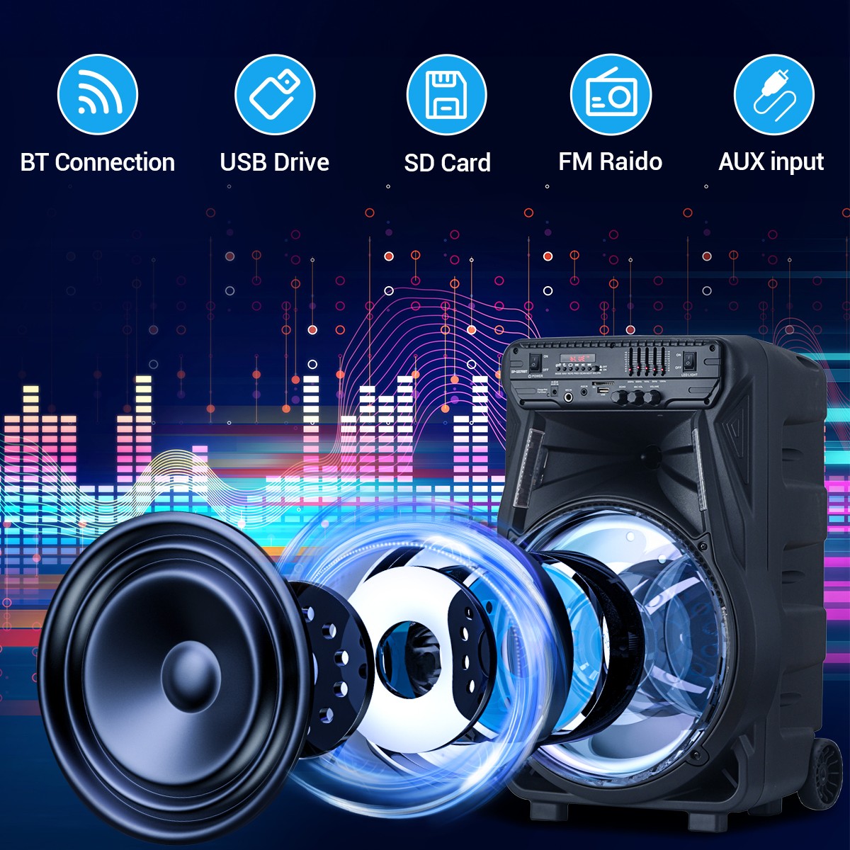 Function: Bluetooth, USB, SD Card, FM, AUX
