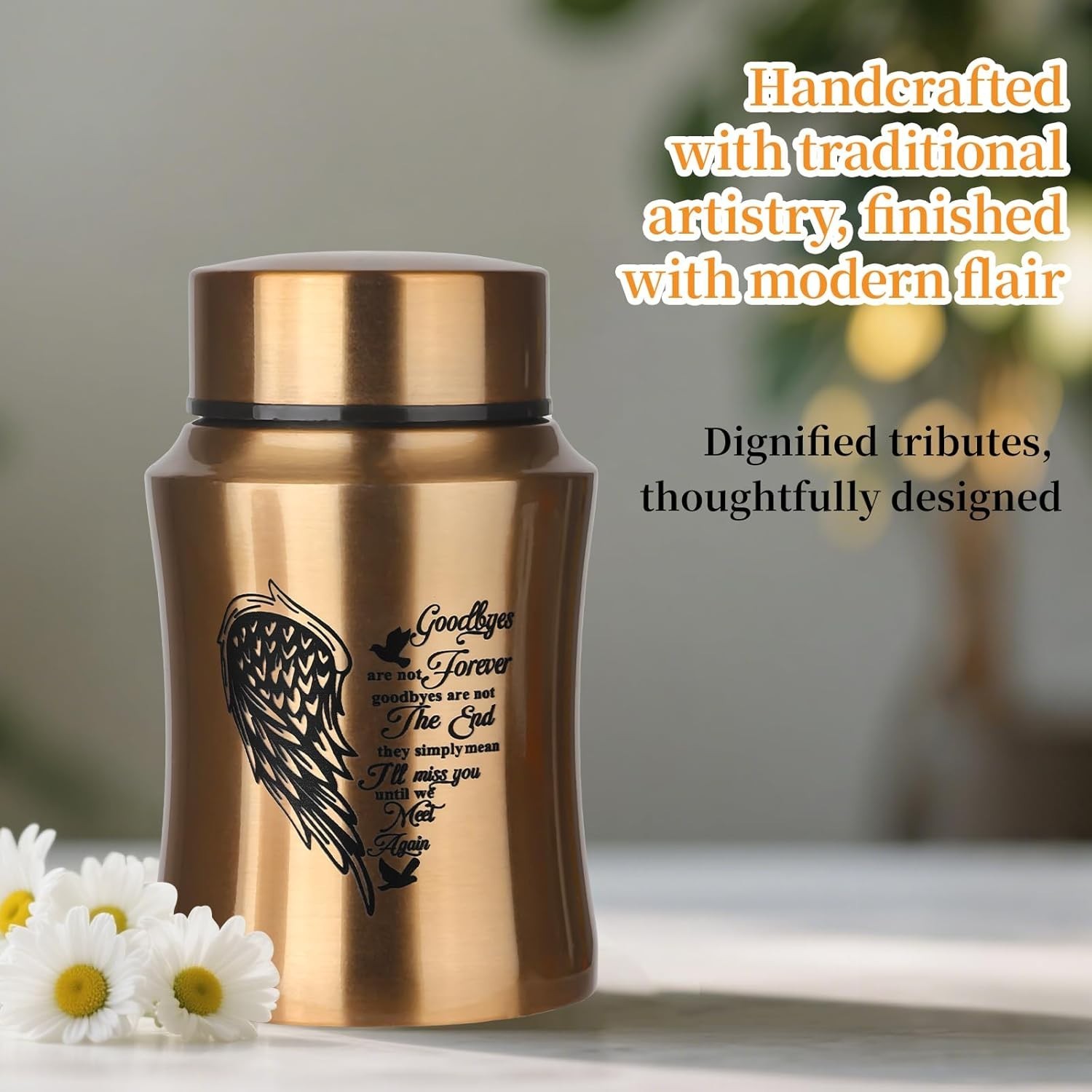 • 4.5 Inches Medium Size Urns for Human Ashes Adult, Heart Angel Wings Cremation