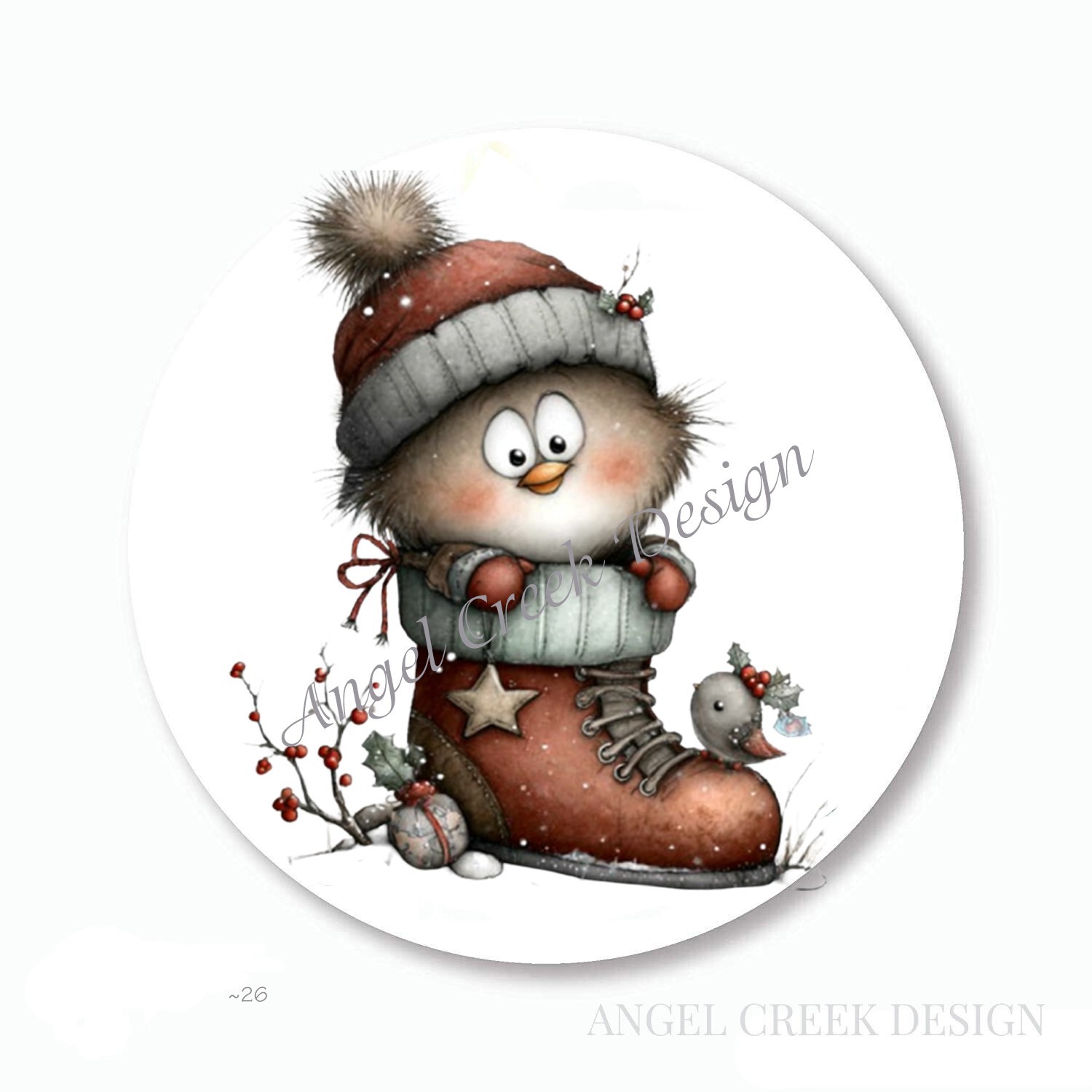 WHIMSICAL CHRISTMAS BIRD IN BOOT SCRAPBOOK STICKERS FAVORS ENVELOPE SEALS