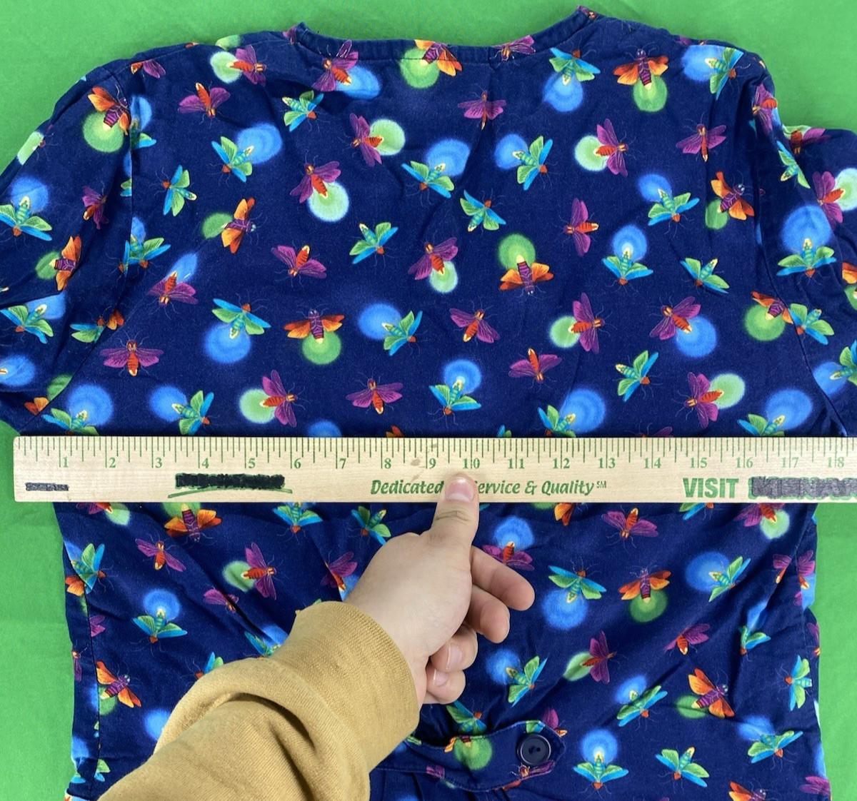 XS Light Bug Patterned Peaches Scrub Top
