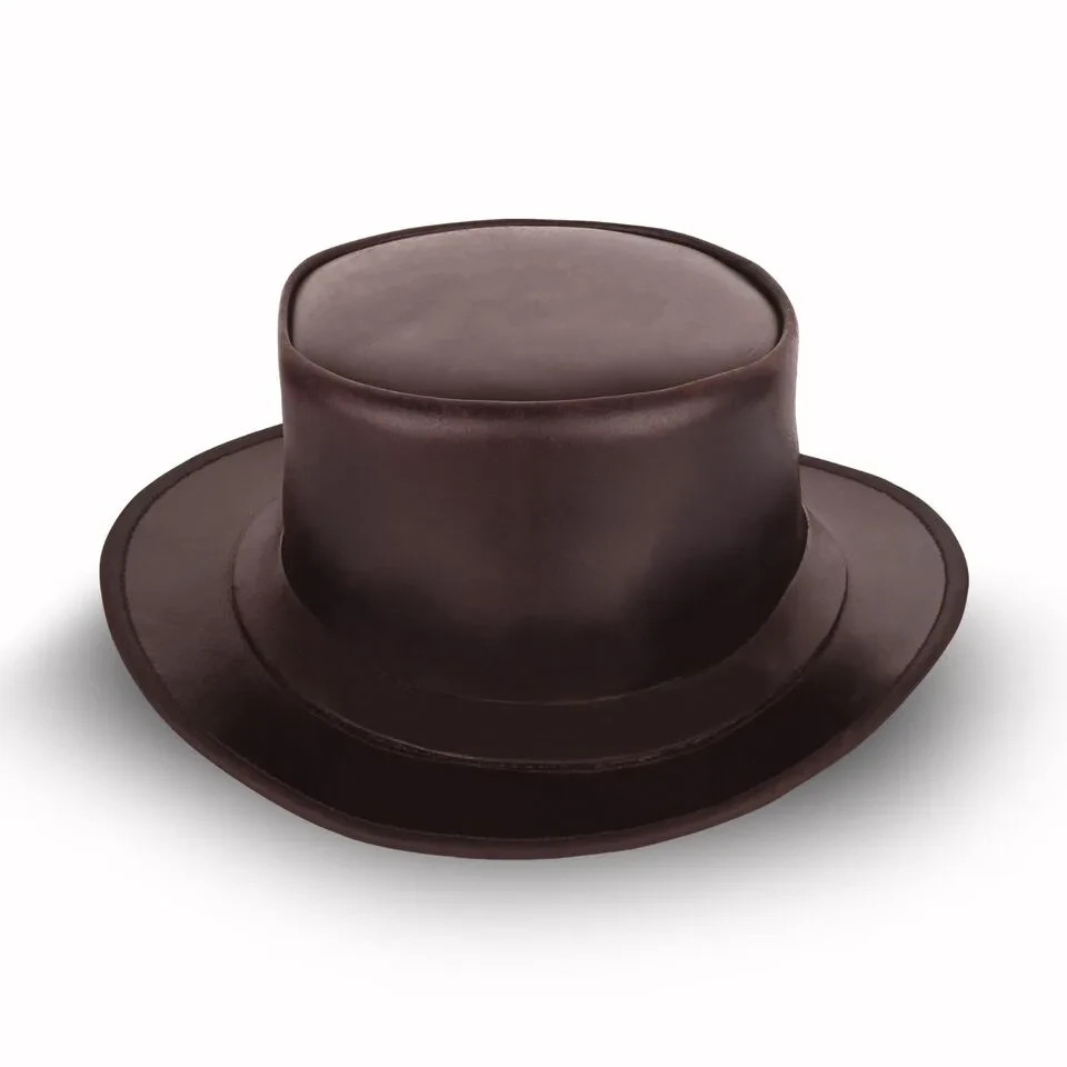 Genuine Leather Shapeable Top Hat Fashion Cosplay Costume Hat for Men Women