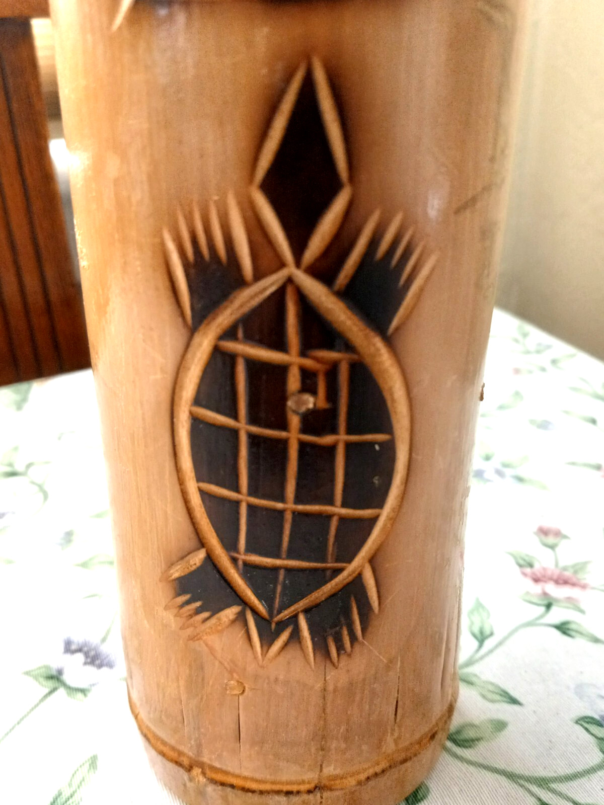 Bamboo Rain Stick Shaker Percussion Handmade Belize Turtles 16.5 x 2.75 Vtg