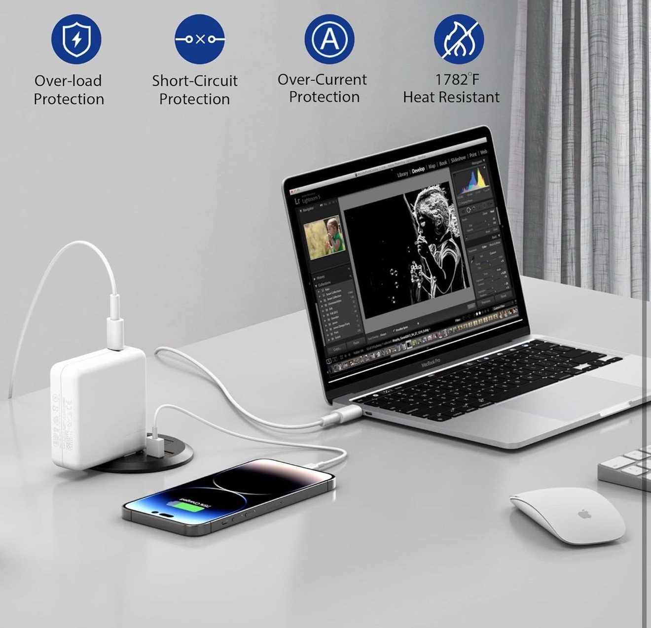 3 inch Desktop Power Grommet USB C,20W Fast Charging Station 2 Outlet 3 USB