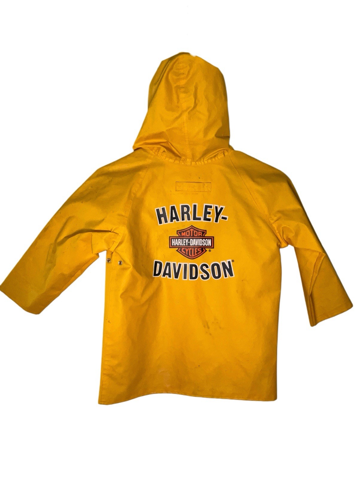 Harley Davidson Hooded Yellow Rain Coat Black Motorcycle Jacket Kids Size 6-8