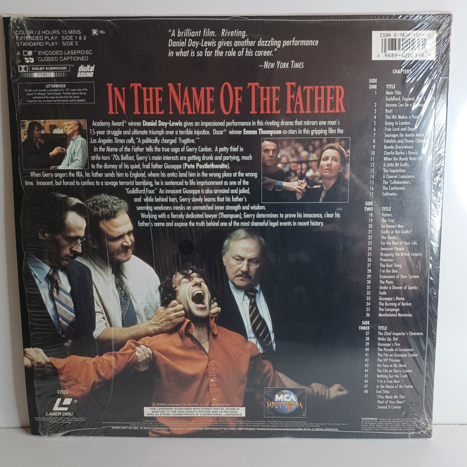 In The Name Of Father Laserdisc Daniel Day Lewis Emma Thompson CLV Letterboxed