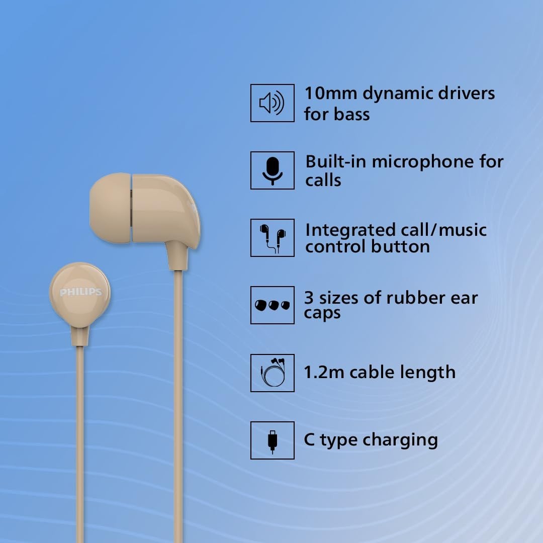PHILIPS Audio TAE1159GD/00 in-Ear Wired Earphones with C-Type Gold