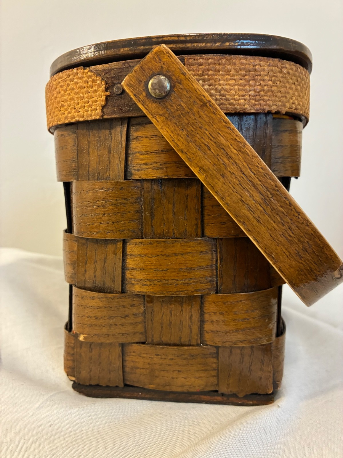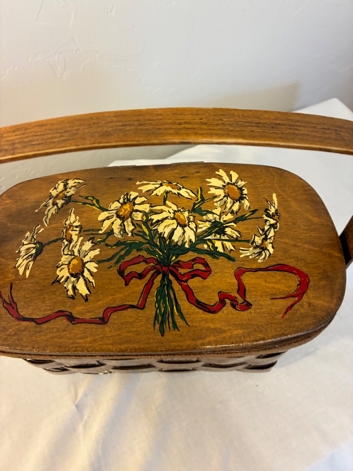 VTG Caro-Nan Casual Colony wood woven basket purse with daisy motif