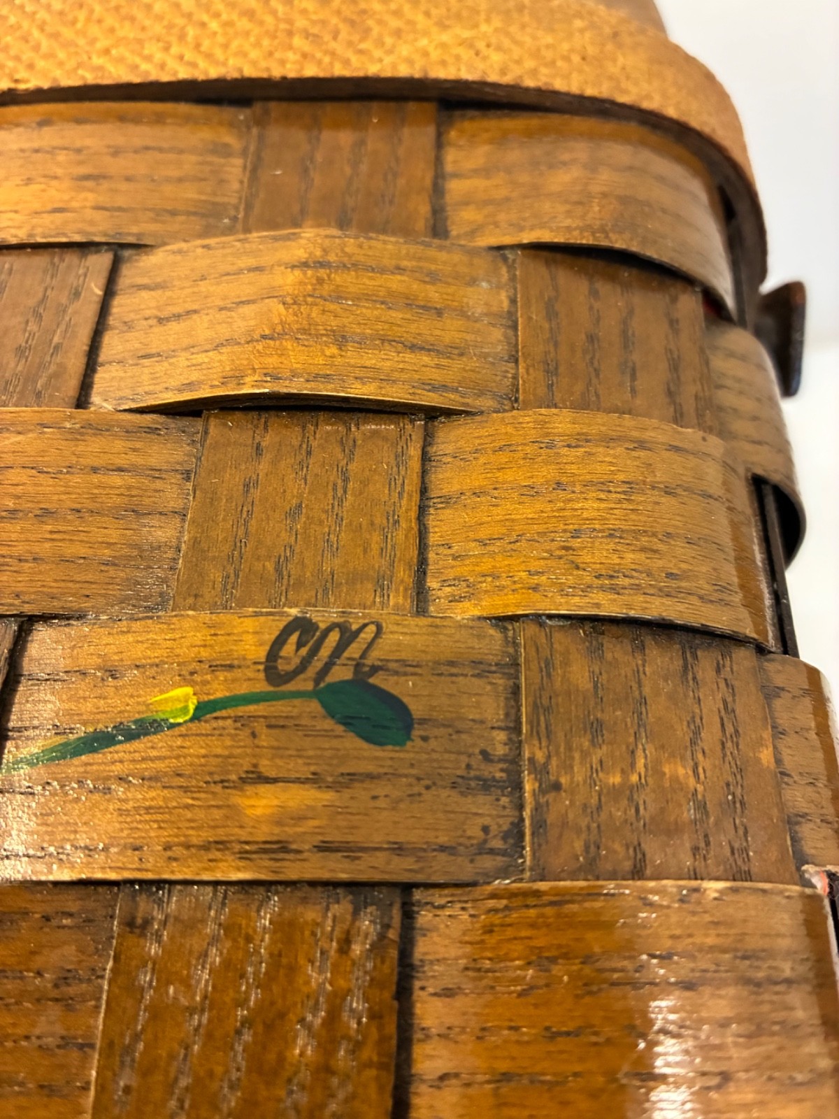 как выглядит VTG Caro-Nan Casual Colony wood woven basket purse with daisy motif фото