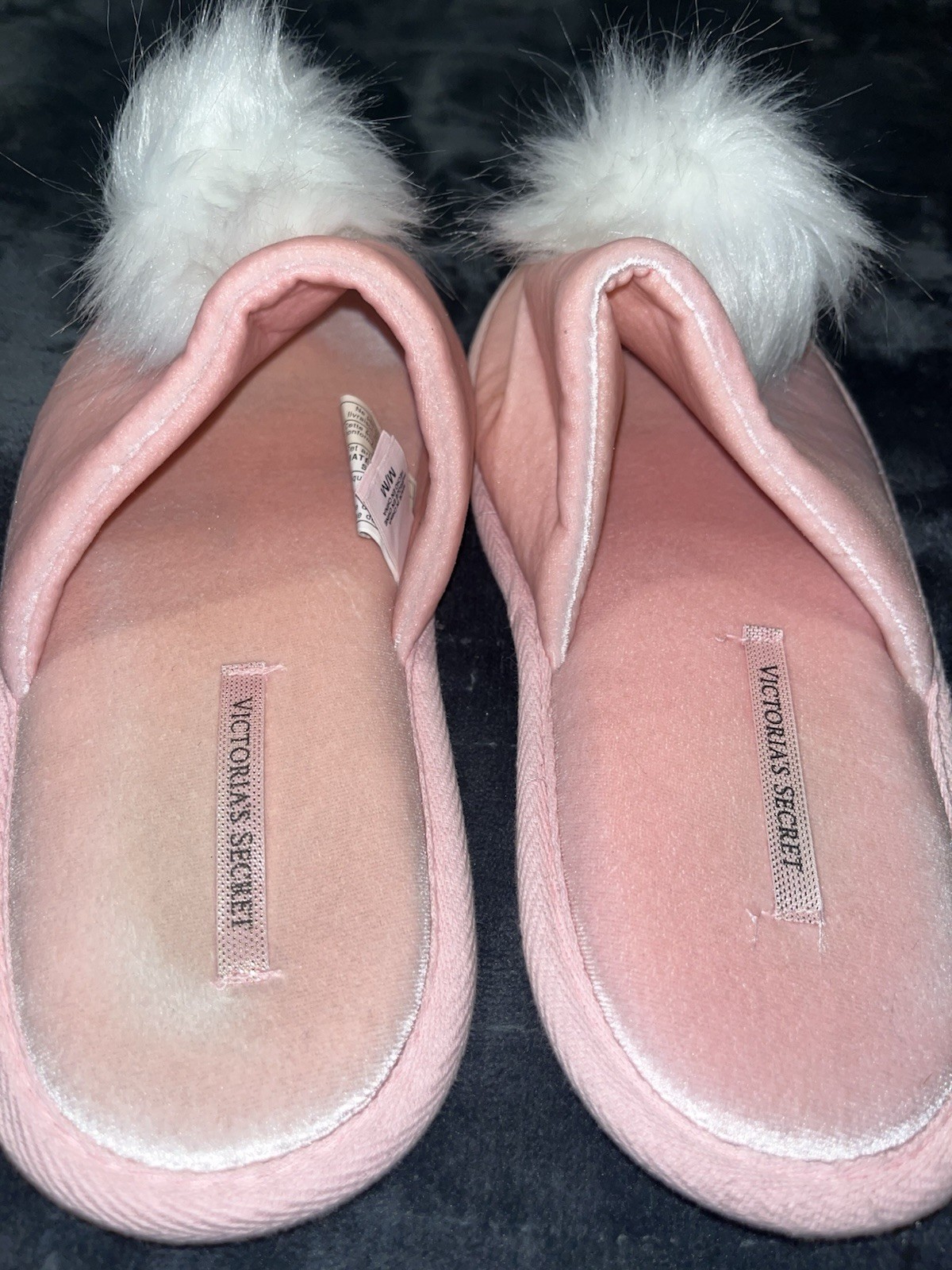 Victoria s Secret Pink Velvet Fuzzy Pom Pom Slippers Sz M New With Out Tags