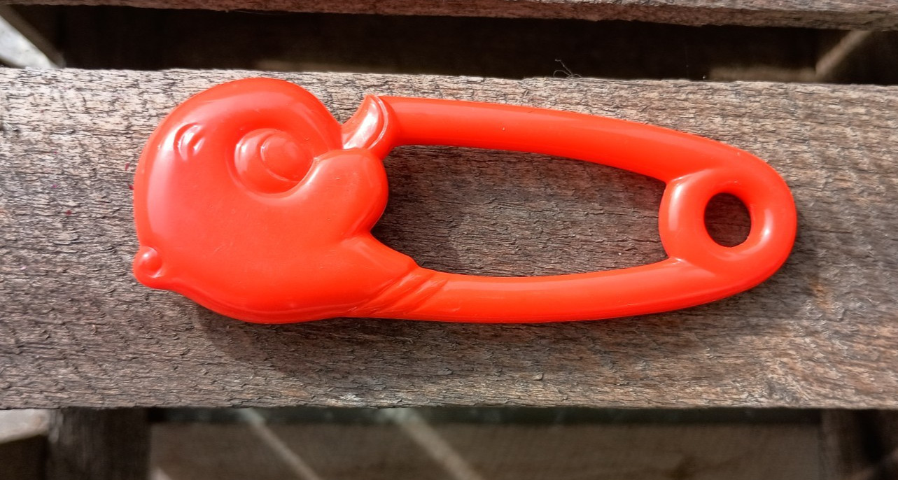 Vintage Red Plastic Duck Diaper Safety Pin Baby Rattle