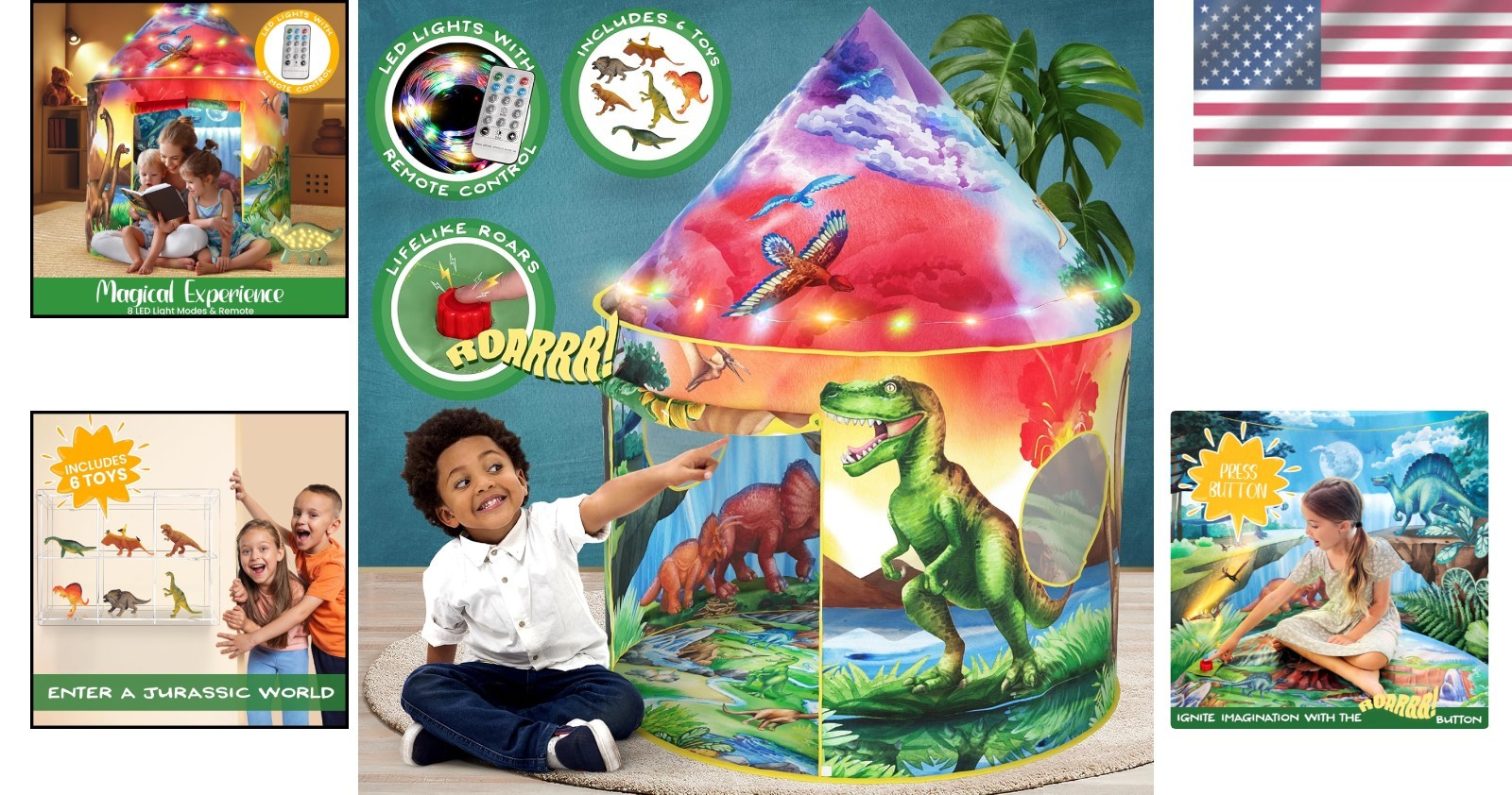 Dinosaur Discovery Kids Tent - Roar Button LED Lights