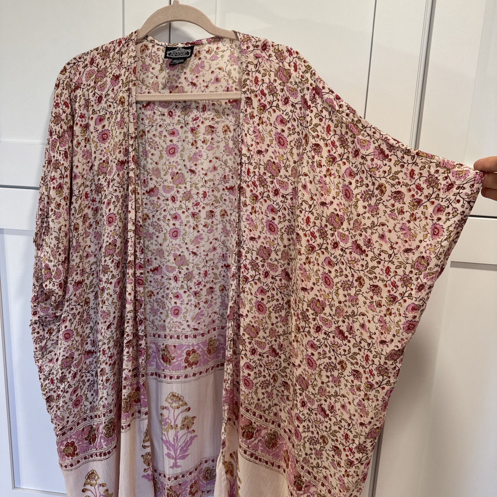 как выглядит Angie Pink Floral Boho Bohemian Kimono Coverup Size Small Versatile фото