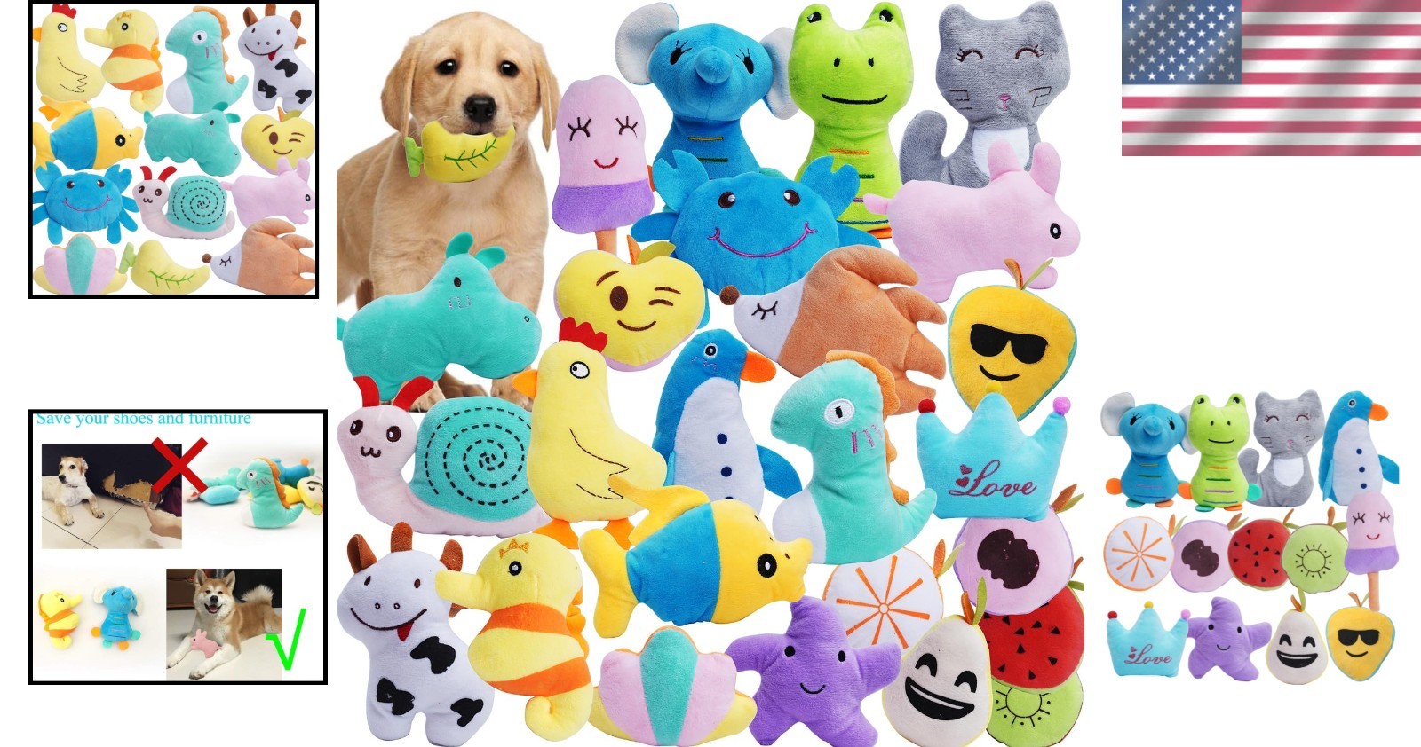 26-Pack Plush Squeaky Toys for Puppies Small Dogs - Colorful Fun Collection