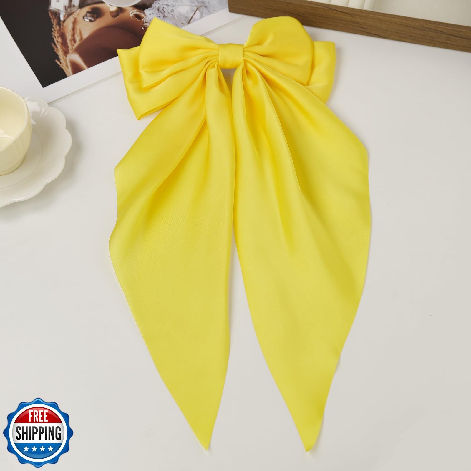 JGQUR Yellow Hair Bows Clip Bright Oversized Satin Bow with Long Tails, Che