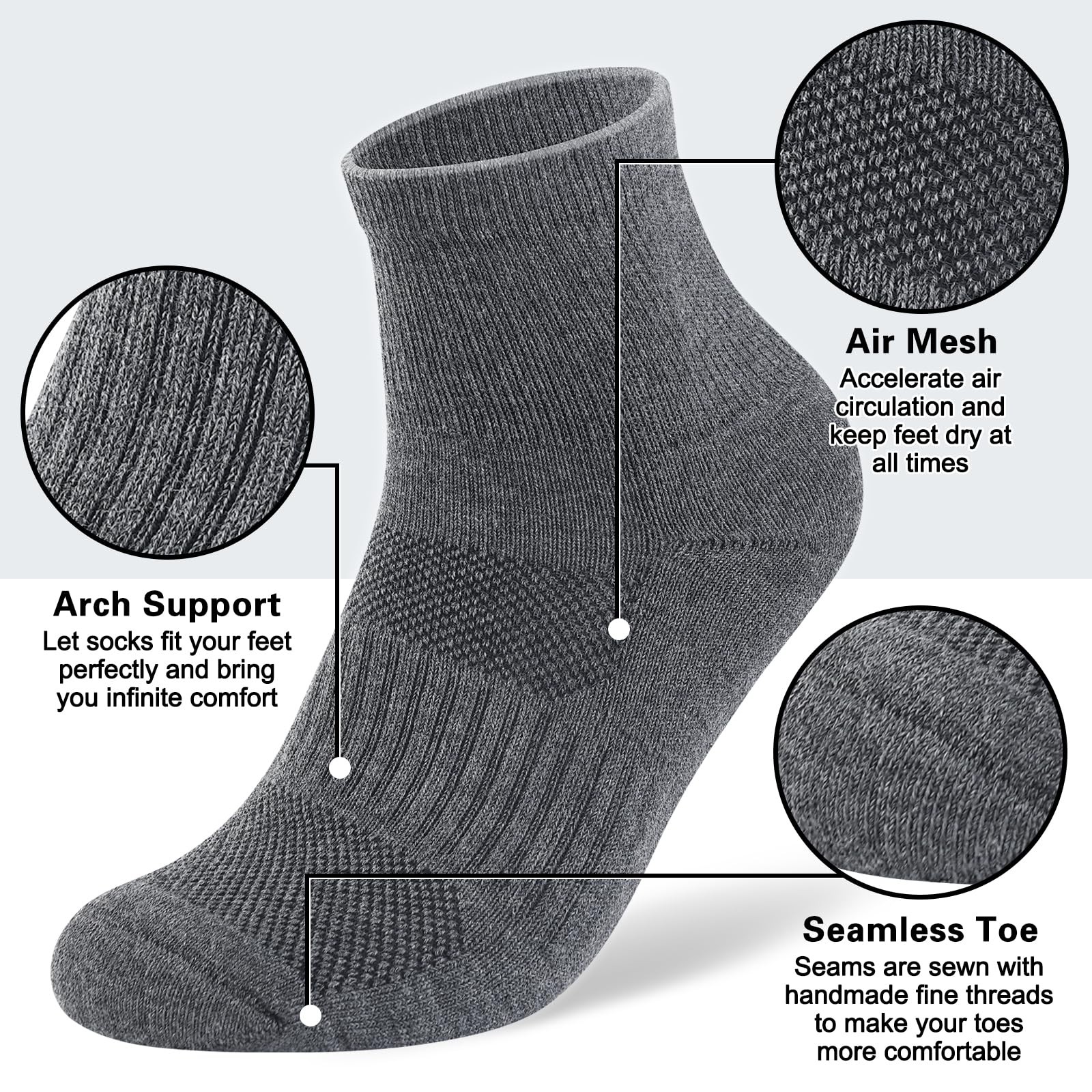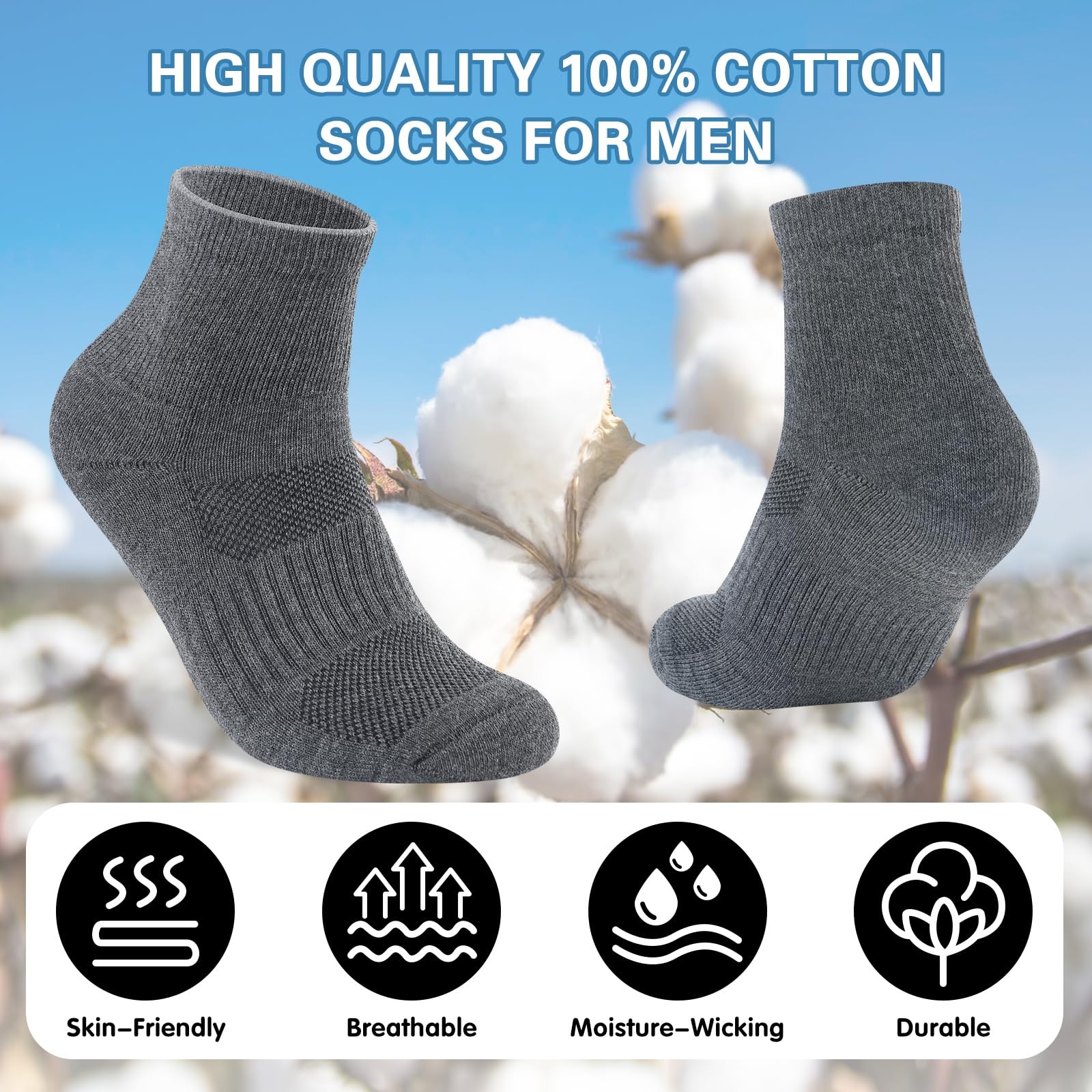 Mens 100 Cotton Cushioned Ankle Socks, Moisture Wicking Breathable Athletic ...
