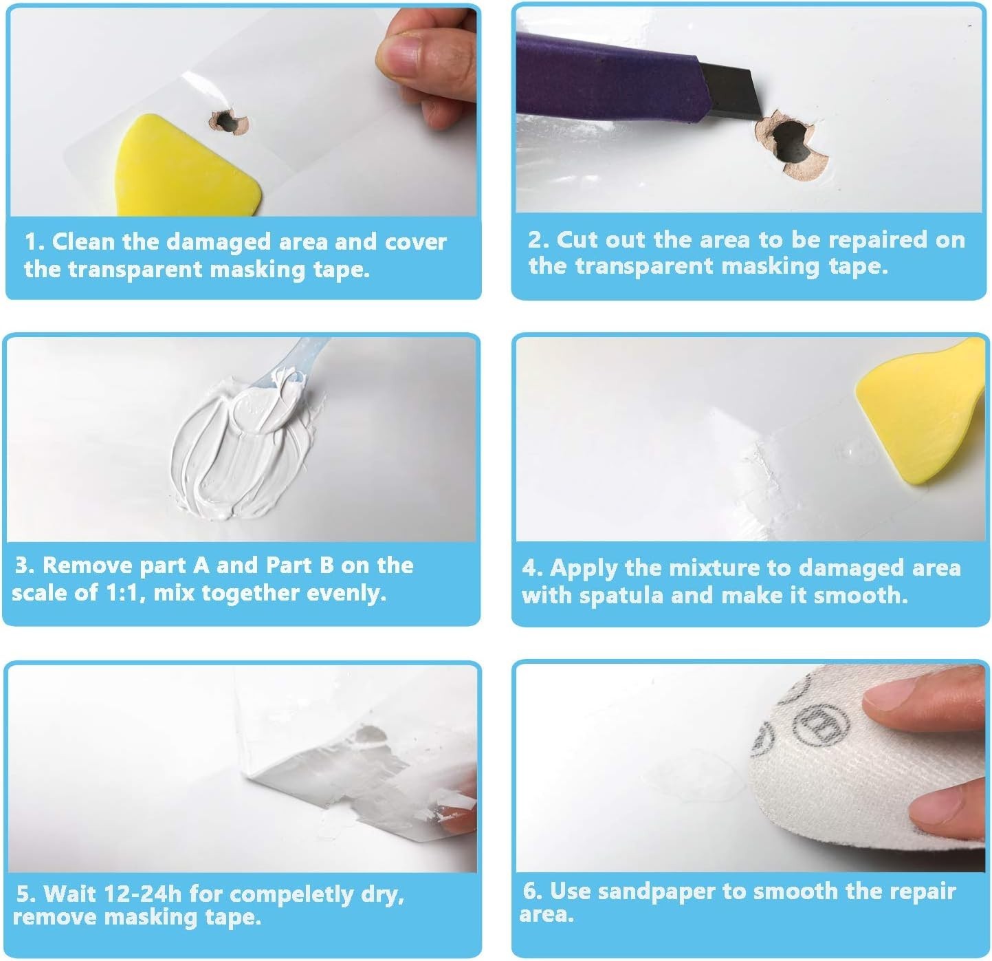 White Tub Tile Repair Kit Pro Paste - Fix Cracks Chips Holes Porcelain Shower