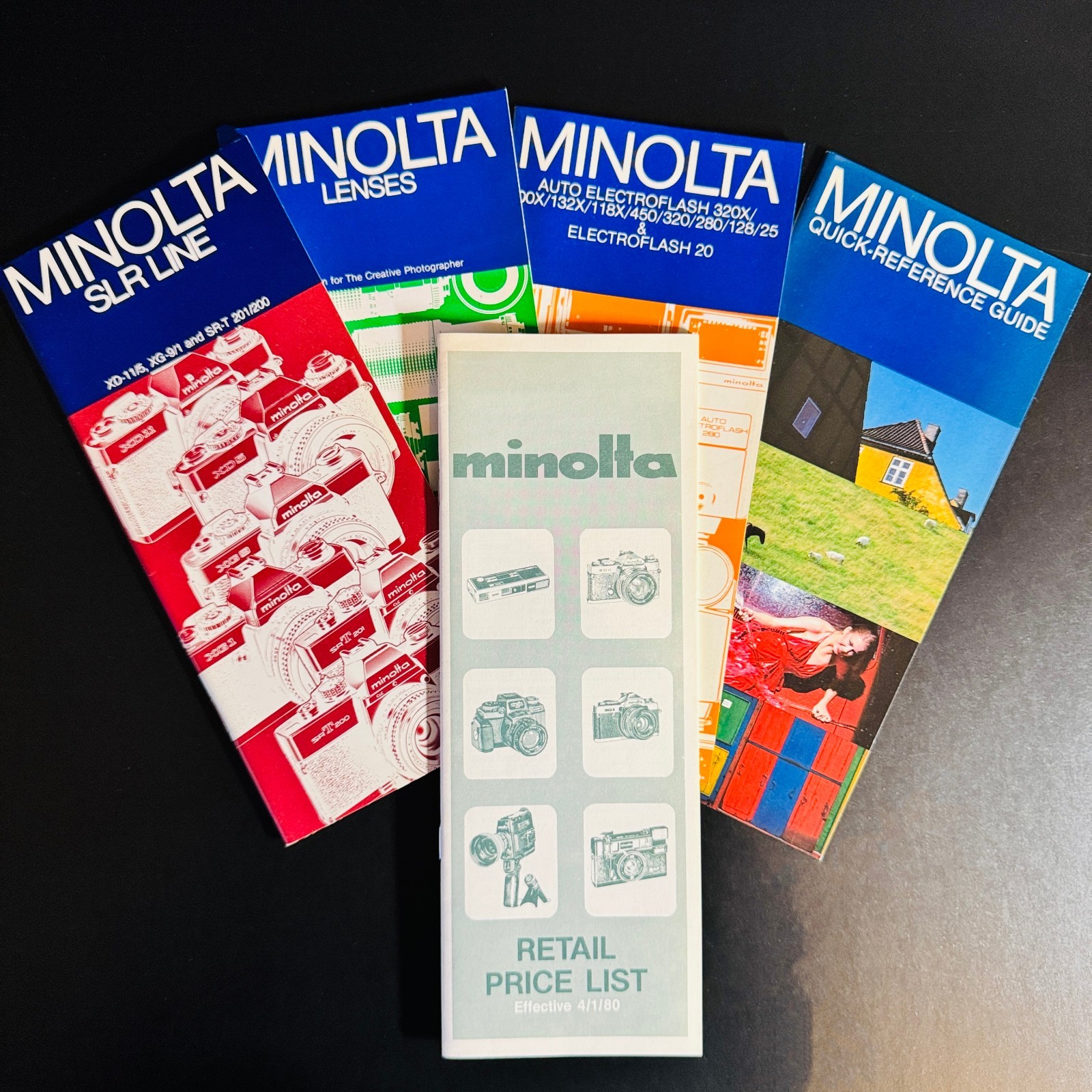 1980 MINOLTA PRODUCT CATALOGS PRICE LISTS - SLR, Lenses, Flashes, Ref Guide NM