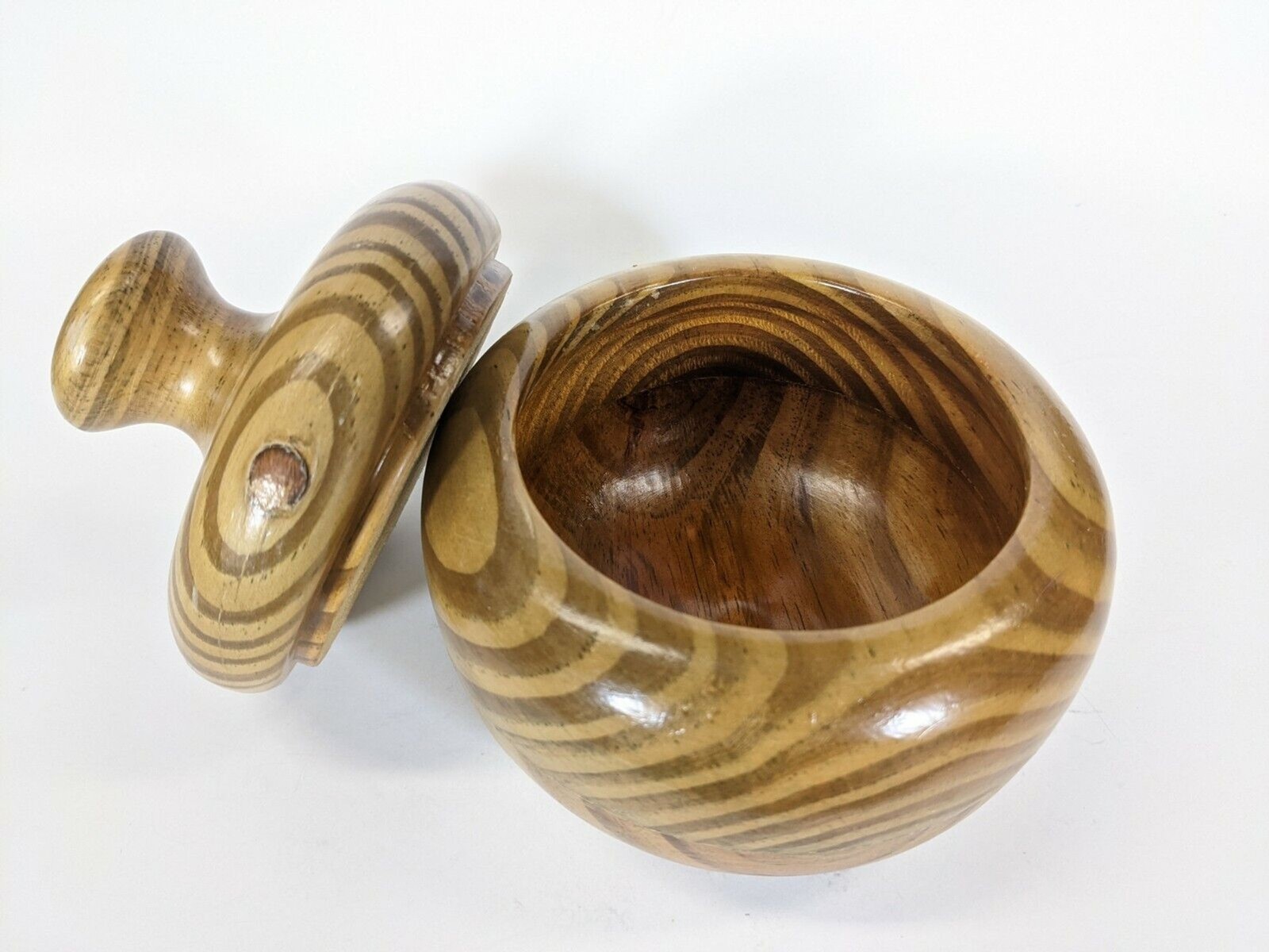 как выглядит Handmade Turned Wood Trinket Box or Covered Bowl Candy Dish 5.25" фото