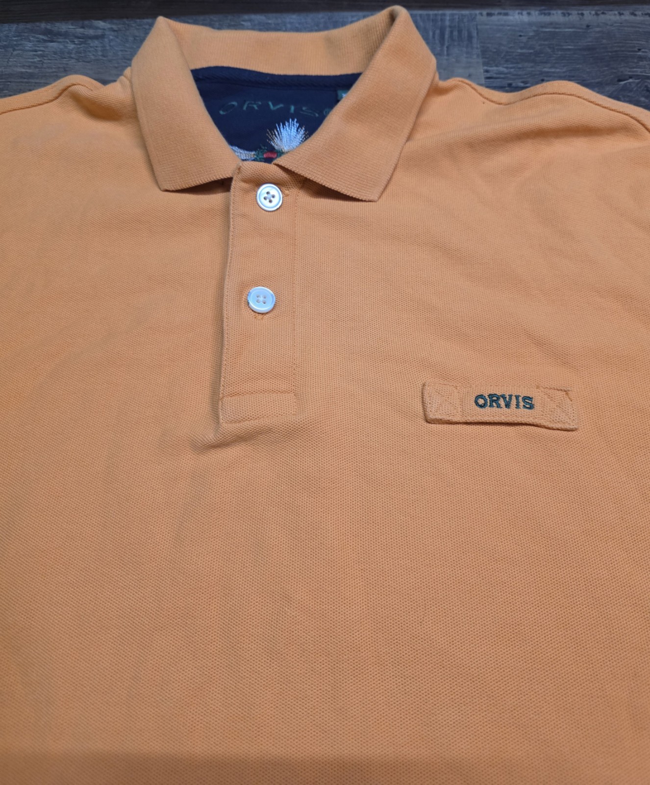 Orvis Men s Polo Shirt Size XL Orange Casual Button Short Sleeve Cotton