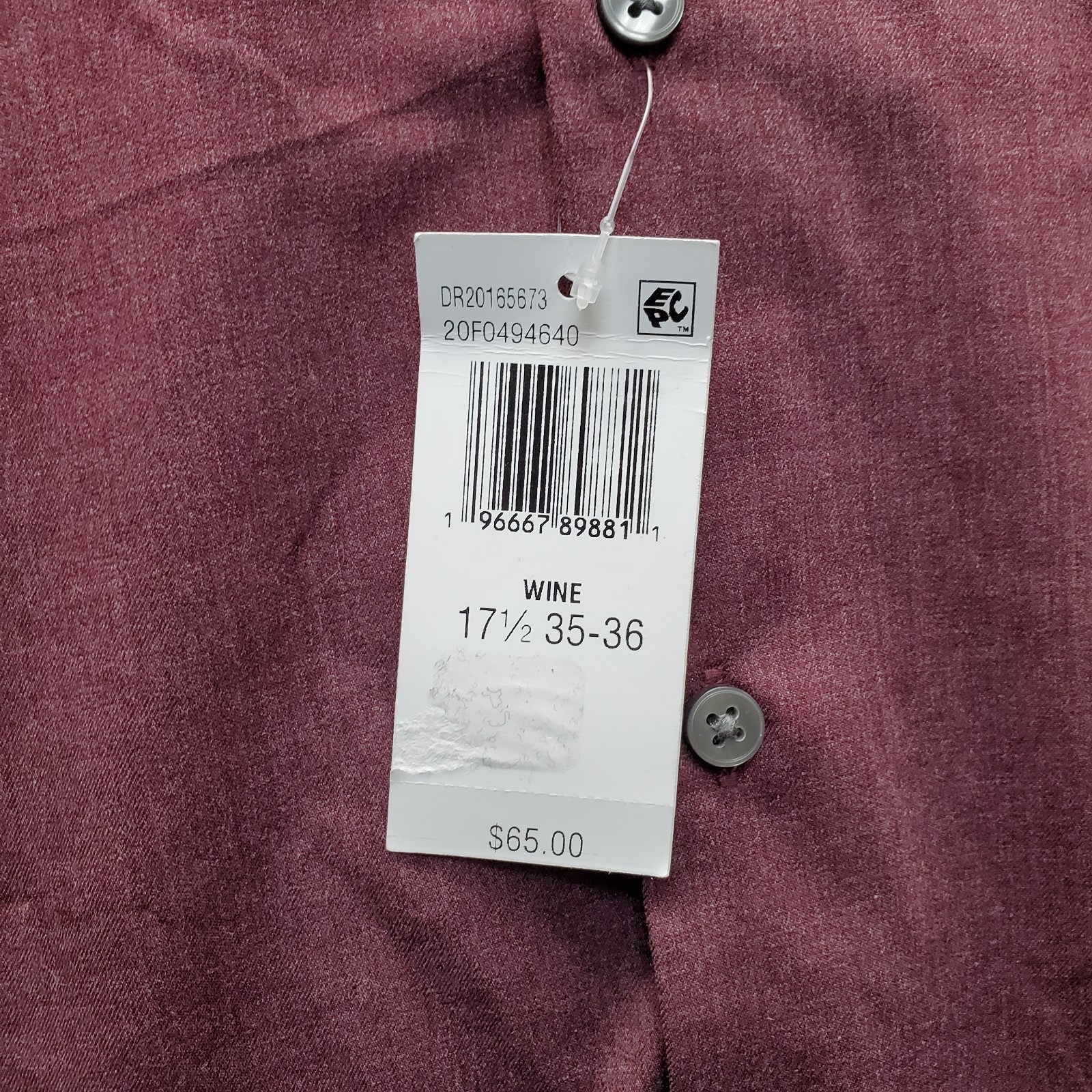 Van Heusen Dress Shirt Mens 17.5 Burgundy Soft Performance Wrinkle Free Tall Fit