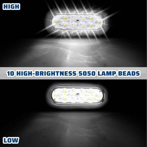 16 Pcs 6 Inch Oval LED Trailer Light Kit, 10 LED Stop Brake Turn Tail White