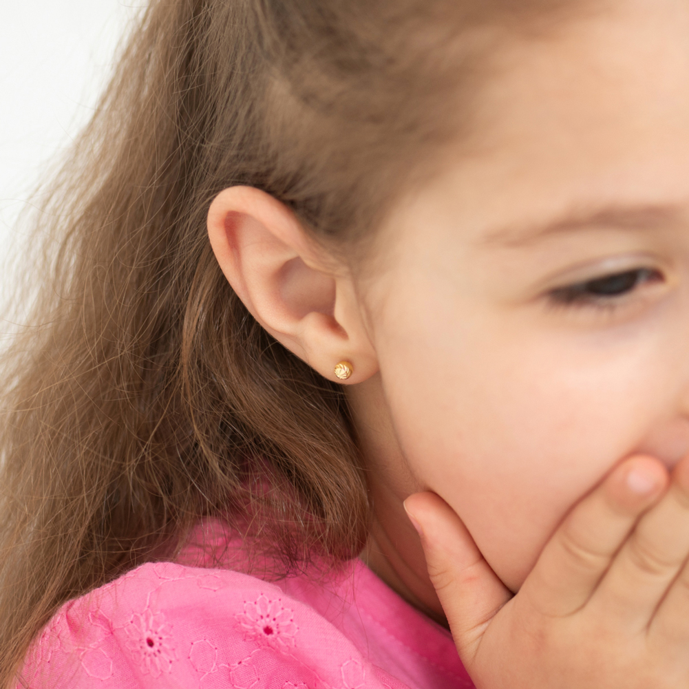 как выглядит 14K Yellow Gold Young Girls Round Diamond Cut Ball Screw Back Earring Studs фото