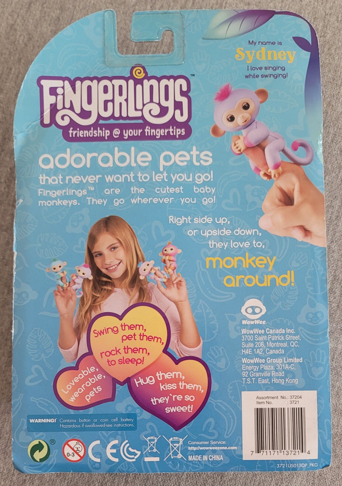 WowWee Fingerlings Baby Monkey Interactive Toy Pet Sydney Purple/Pink 40 Sounds