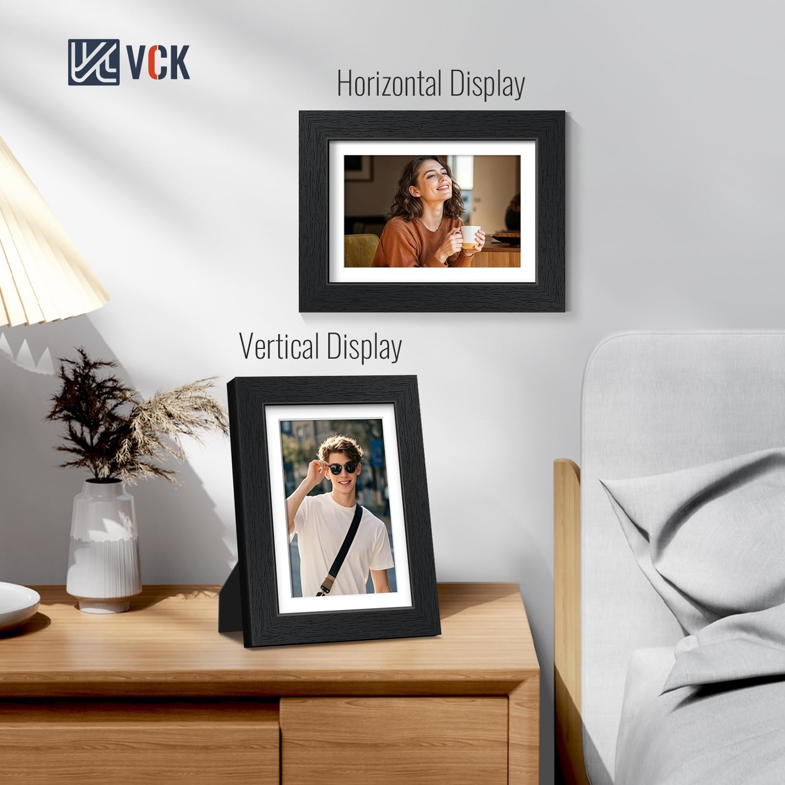 VCK 5x7 Picture Frame 4 Pack, Black Wood Poster Frame, Tempered Glass, Displa...