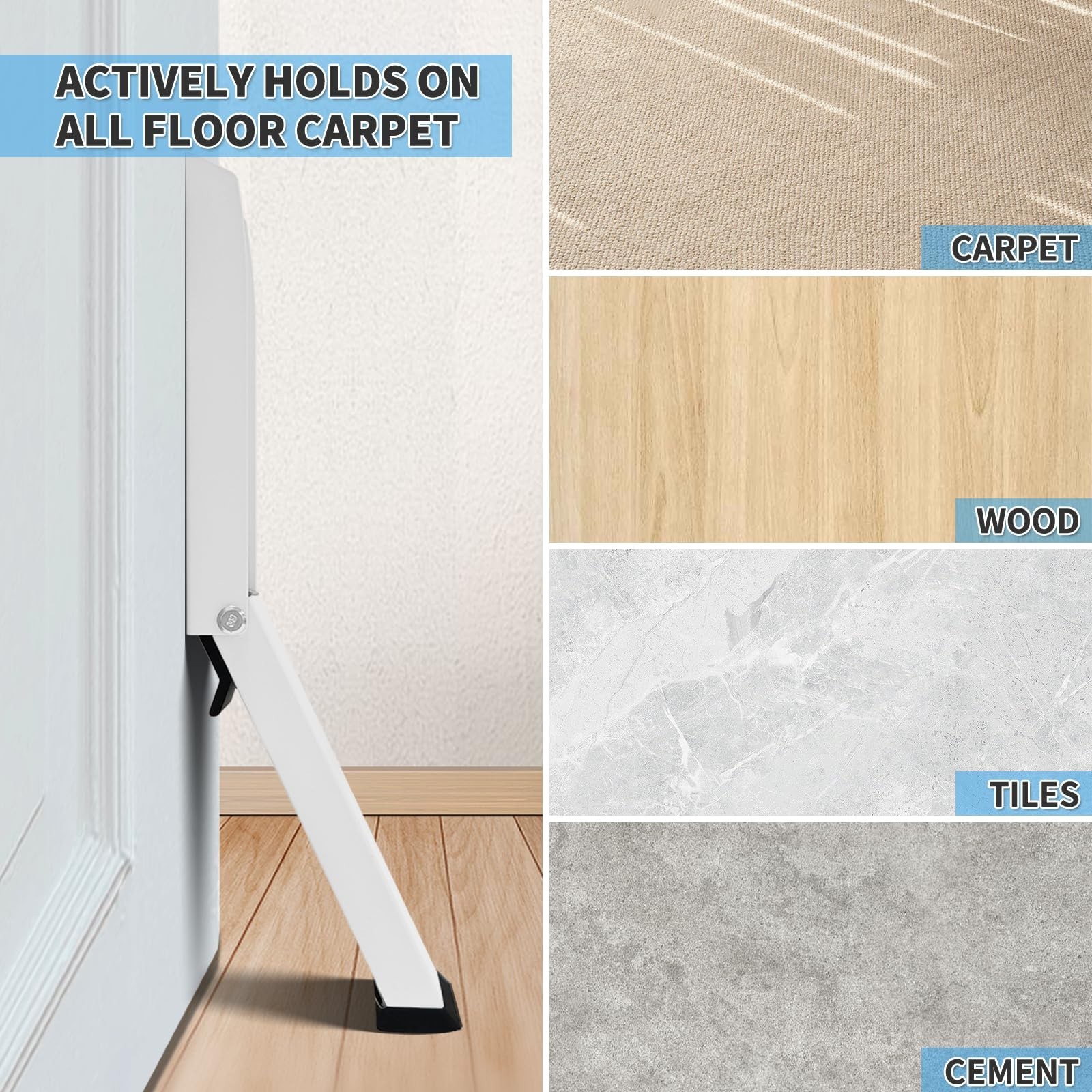 White Door Stopper - No Drilling, Holds Door Open, Folding, Rubber Tips White