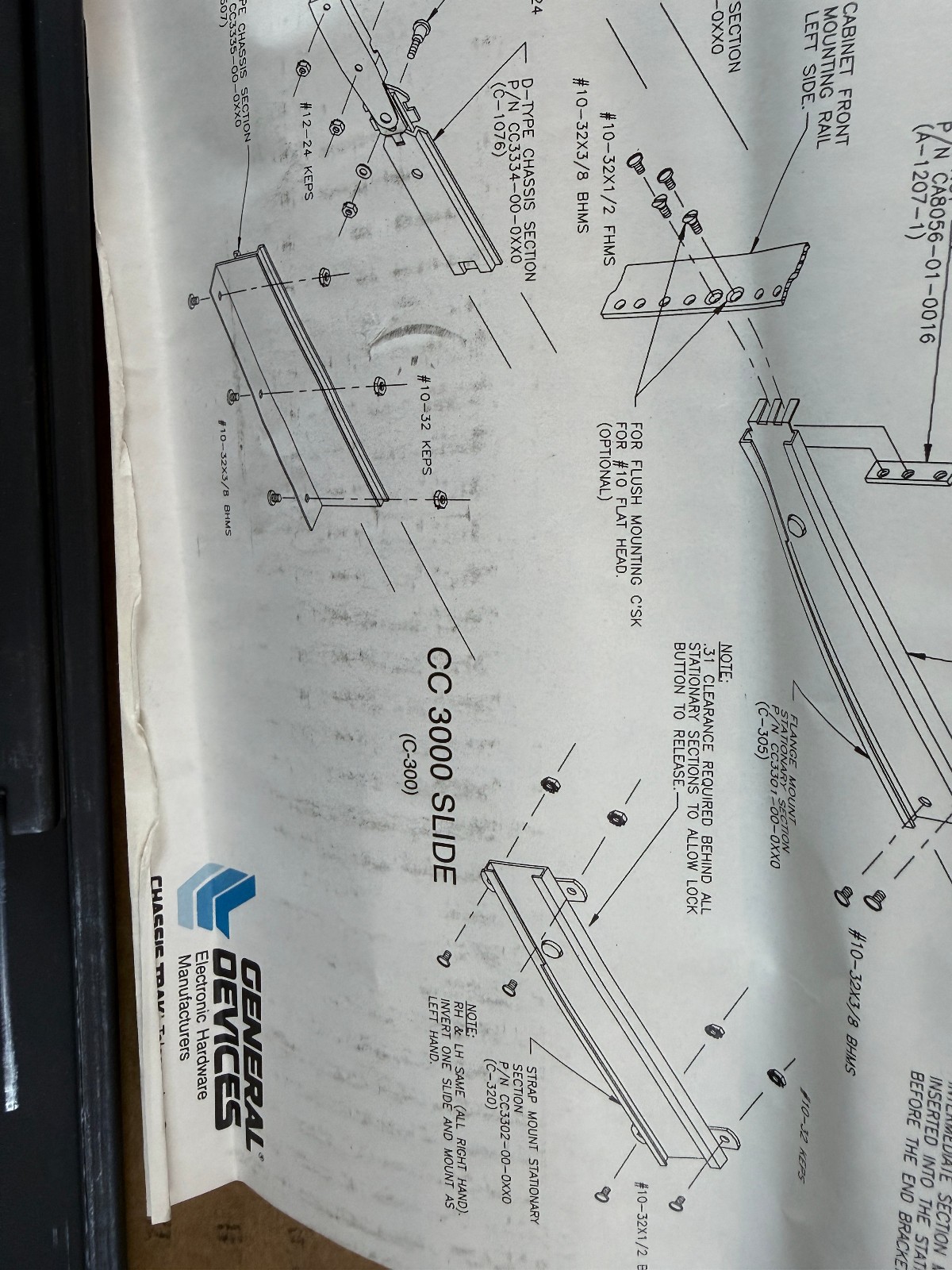 General Devices C-300-S-118 RH New Old Stock Rack Slides Pair
