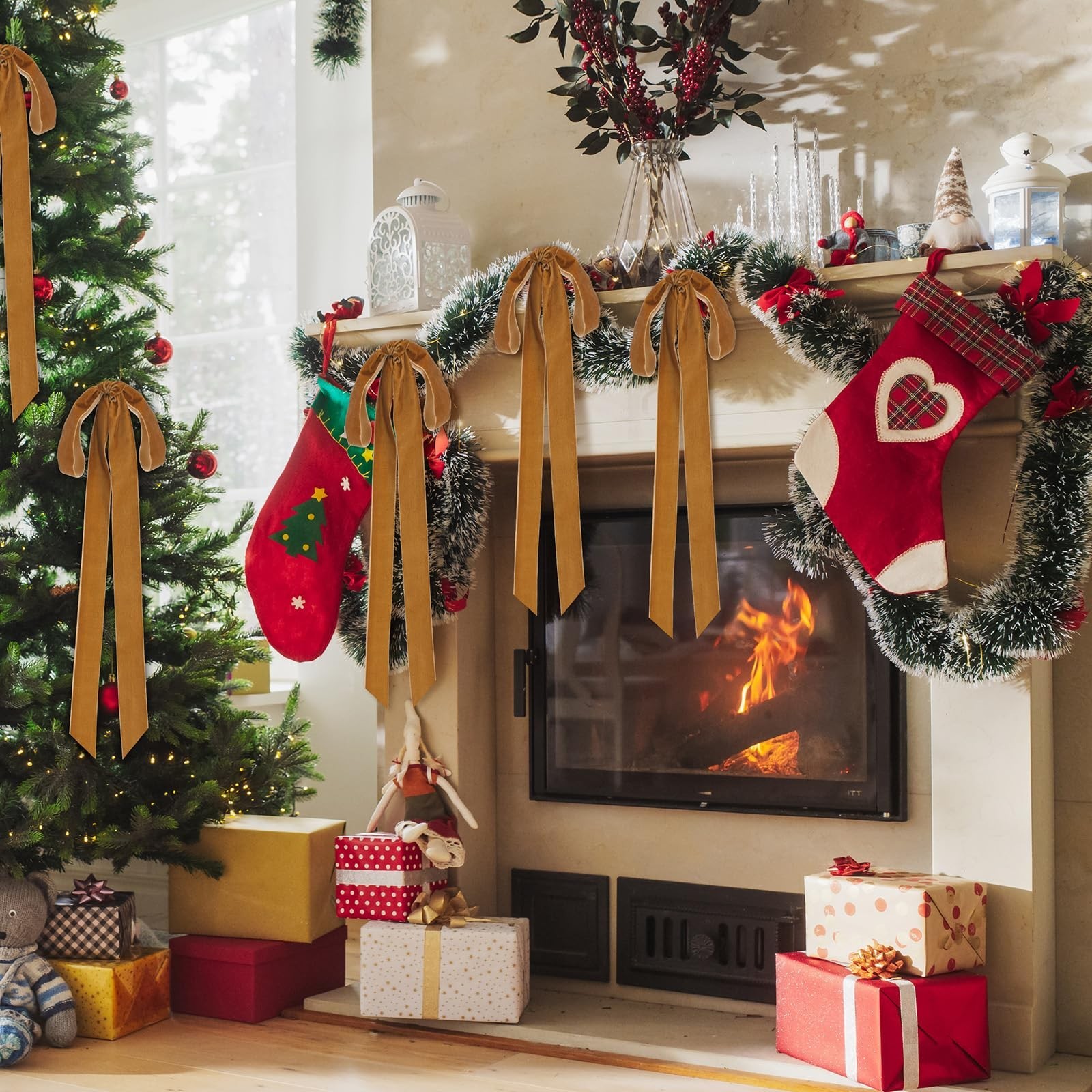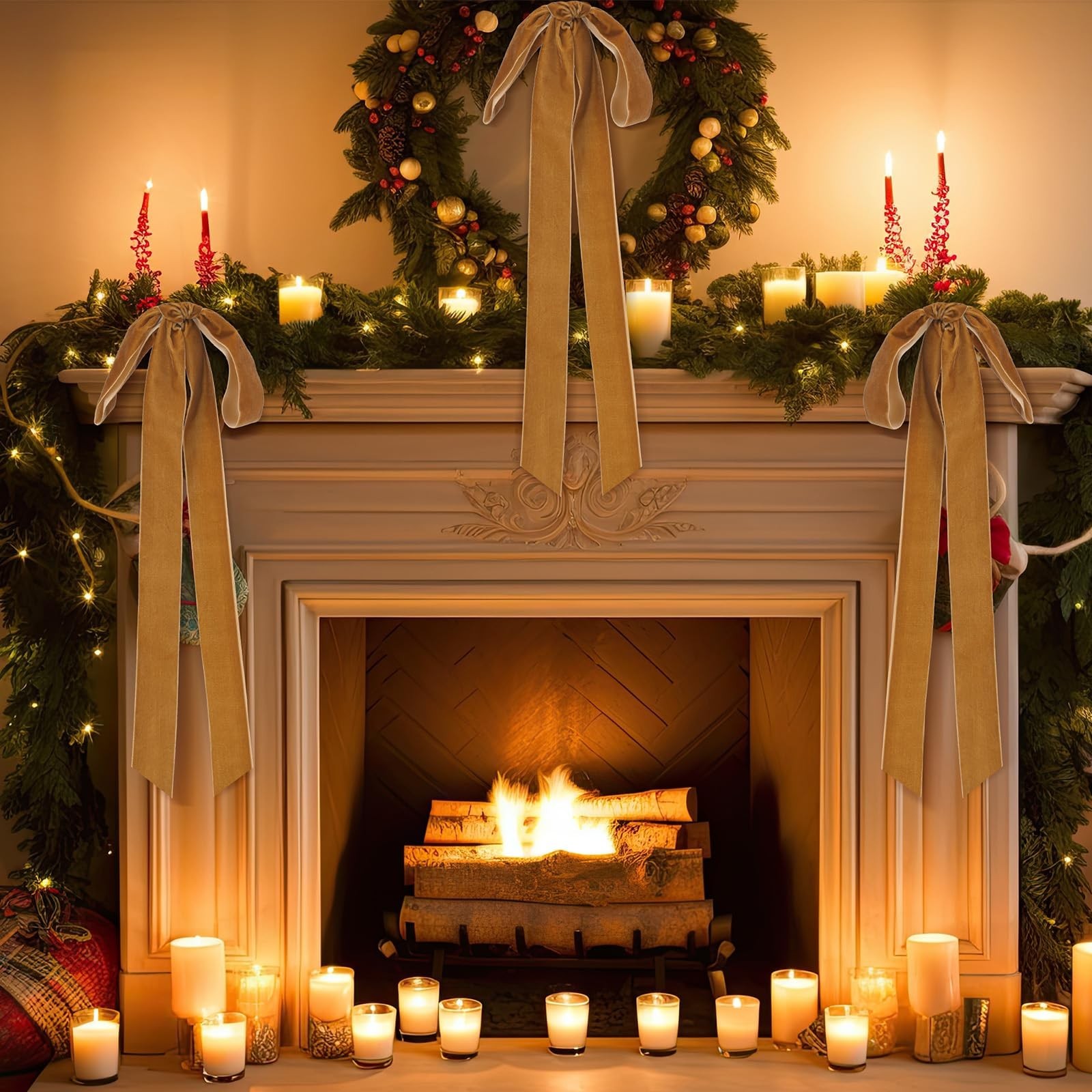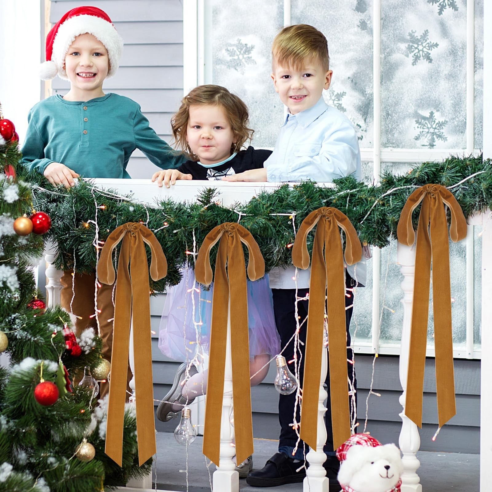 как выглядит Velvet Christmas Bows 3/8 Inch Christmas Wreath Bows Rustic Crafts Gift Bows ... фото