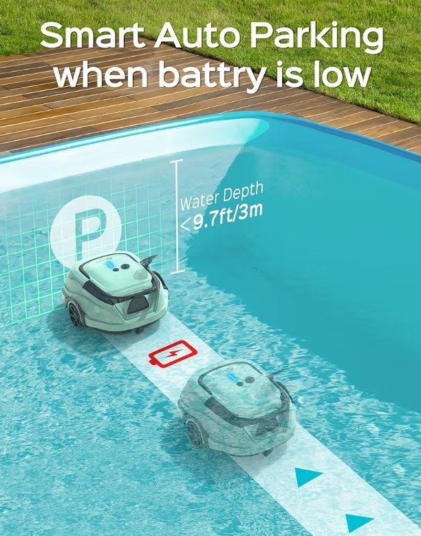 Cordless Robotic Automatic Pool Vacuum Cleaner Dual Layer Filter 1076 Sq.ft BNIB