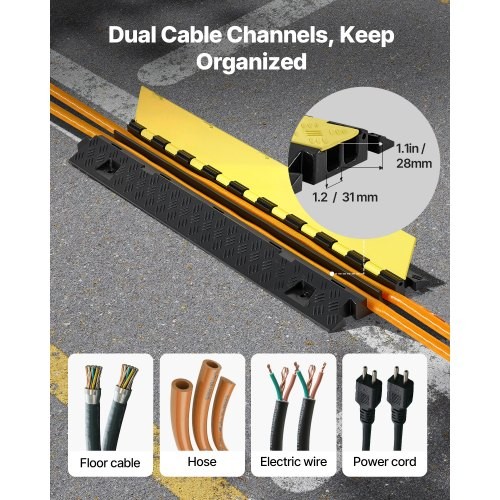 Cable Protector Ramp, 22,000 lbs/axle Capacity, 2 Channel Heavy Duty TPU Cord Ho