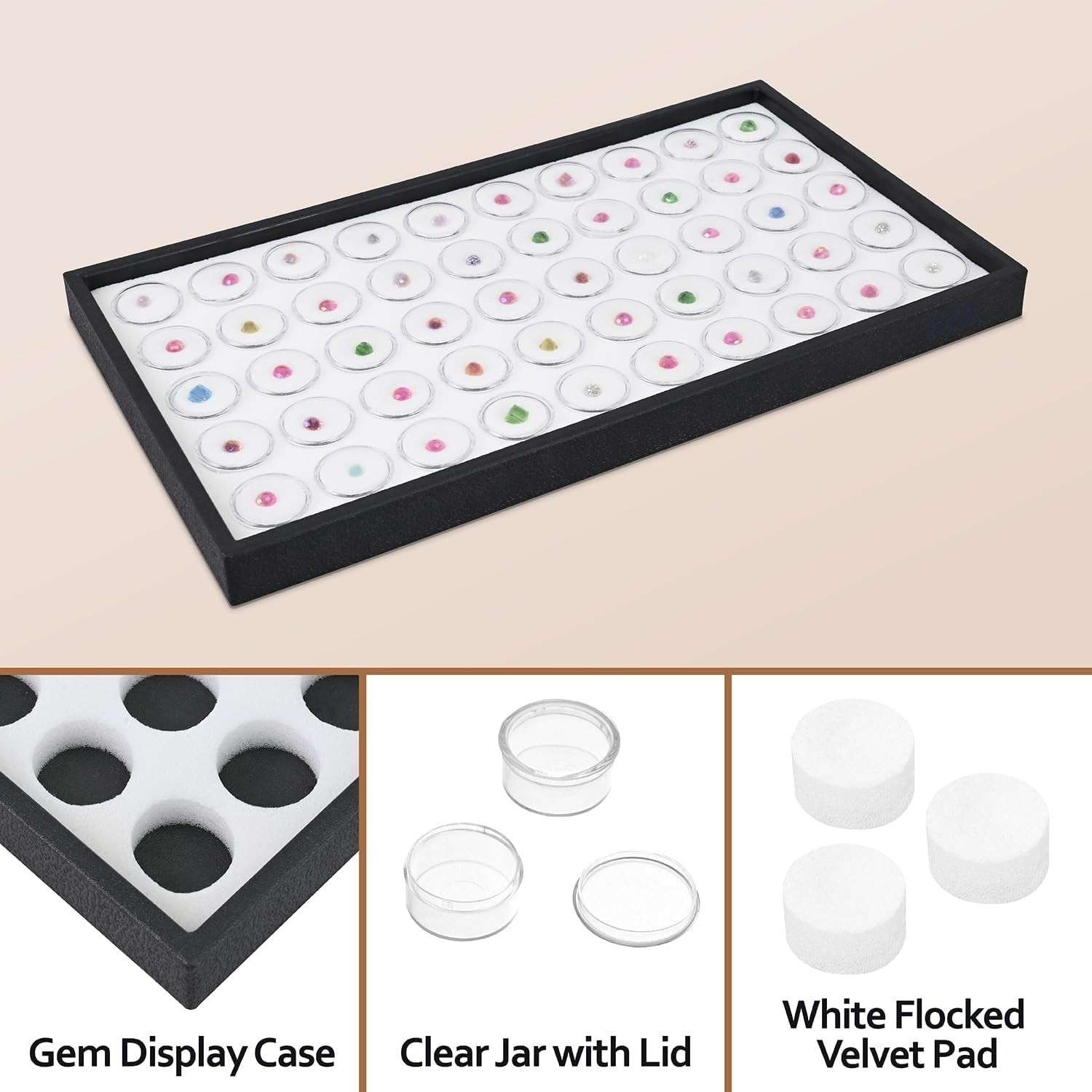 White Foam Gem Jars Showcase Stackable Display Tray for Collectibles, Home Or...