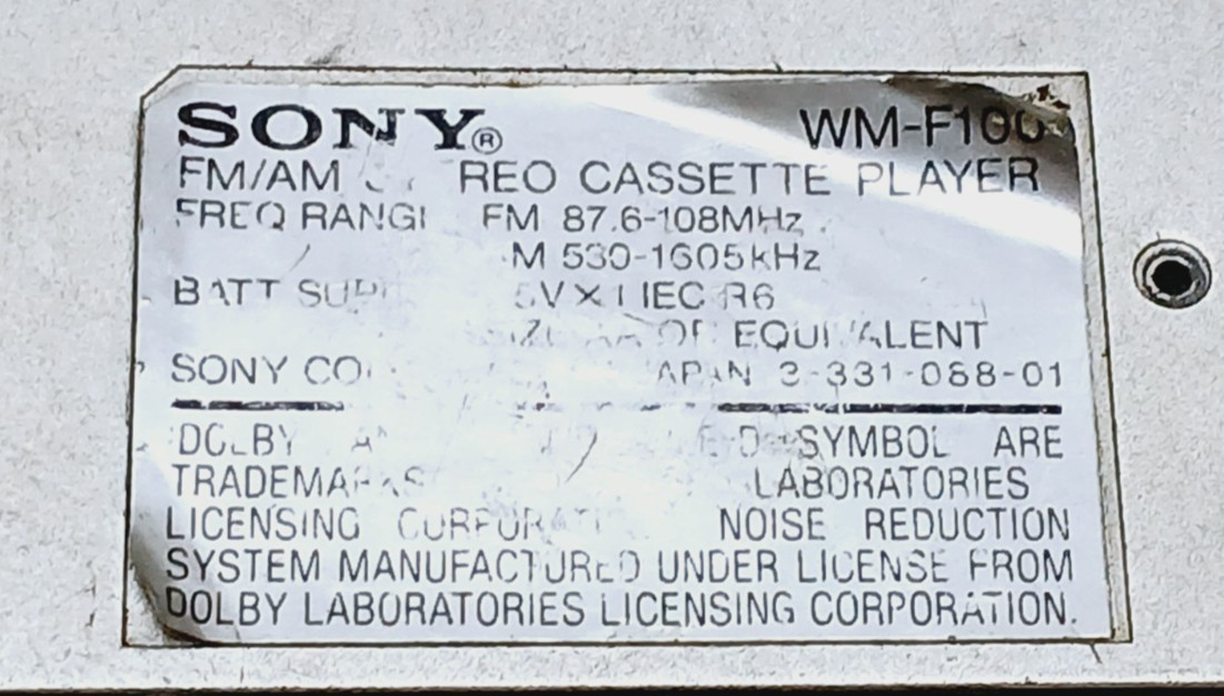 Sony WM - F100 Walkman Cassette Player - For parts only Scrap not working