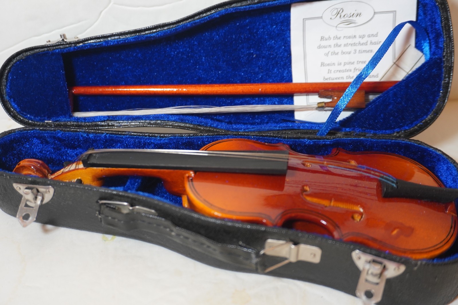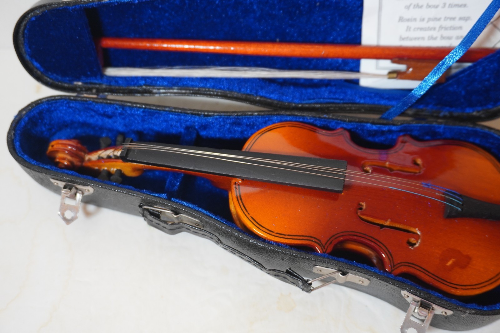 как выглядит Wooden 7" Miniature Violin with Bow In Black Case, Mini Adjustable Musical Instr фото